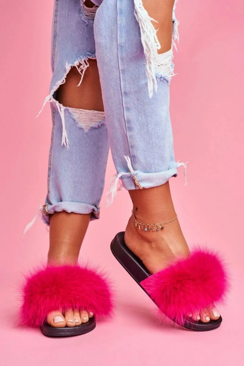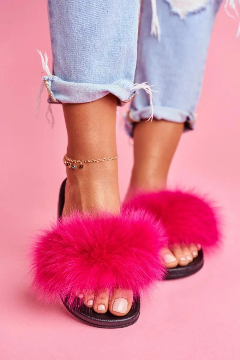 Klapki damskie z naturalnym futerkiem. Podeszwa wykonana jest z gumowego, lekkiego tworzywa. Delikatnie profilowana wkładka zadba o Twój komfort.