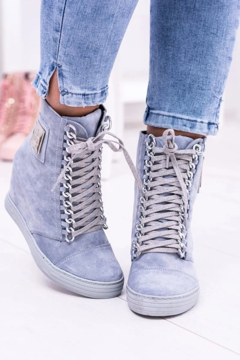 Boto Damskie Sneakersy Lu Boo Z Łańcuchami Zamszowe Niebieskie Monica