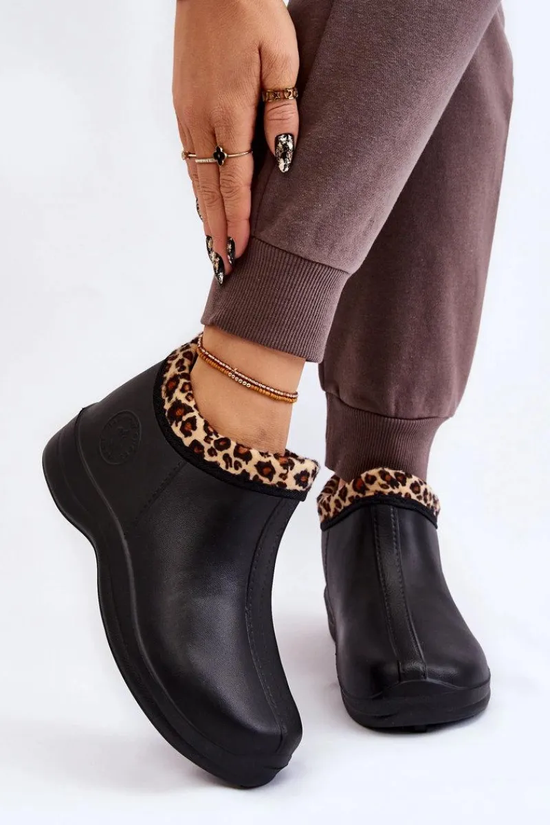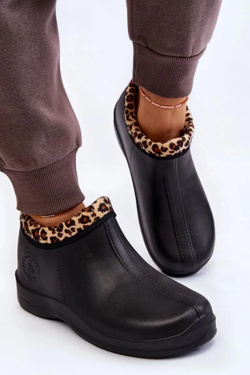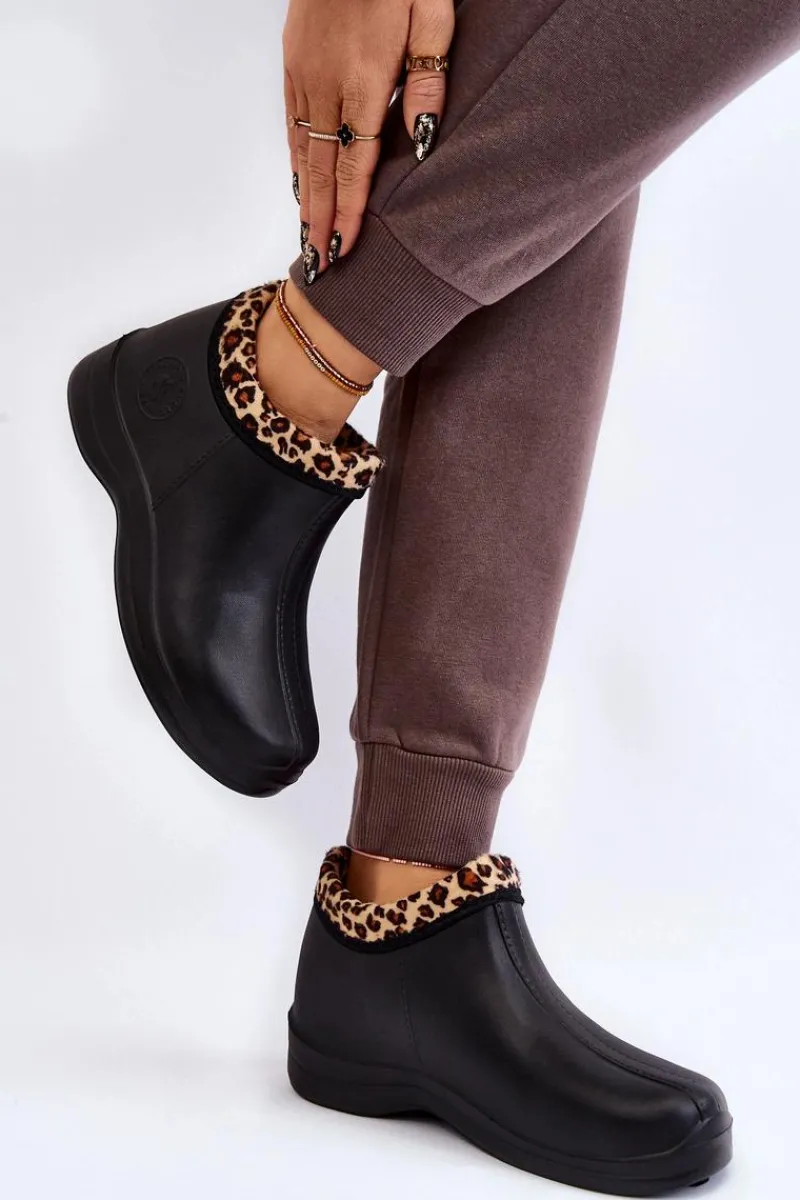 Klasyczne, damskie kalosze zostały wykonane z piankowego tworzywa typu EVA. Model ten został ocieplony eko futerkiem. Buty osadzone na płaskim obcasie oraz delikatnej platformie. Z boku znajduje się ozdobne, tłoczone logo. Idealne na spacery po mokrym podłożu czy do prac w ogrodzie. Przy wyborze rozmiaru prosimy sugerować się tabelą rozmiarów.