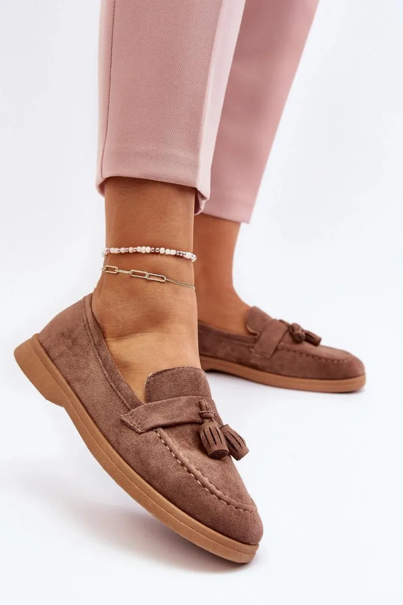 Mokasyny to absolutny hit tego sezonu! Wykonane z eko zamszu, prezentują się nie tylko stylowo, ale także są przyjemne w noszeniu. Zaokrąglony nosek dodaje im uroku, a miękka wkładka z eko skóry zapewnia niezrównany komfort, nawet podczas długiego noszenia. Osadzone na płaskim obcasie, będą doskonałym uzupełnieniem wielu różnorodnych stylizacji! Przy wyborze rozmiaru prosimy sugerować się tabelą rozmiarów.