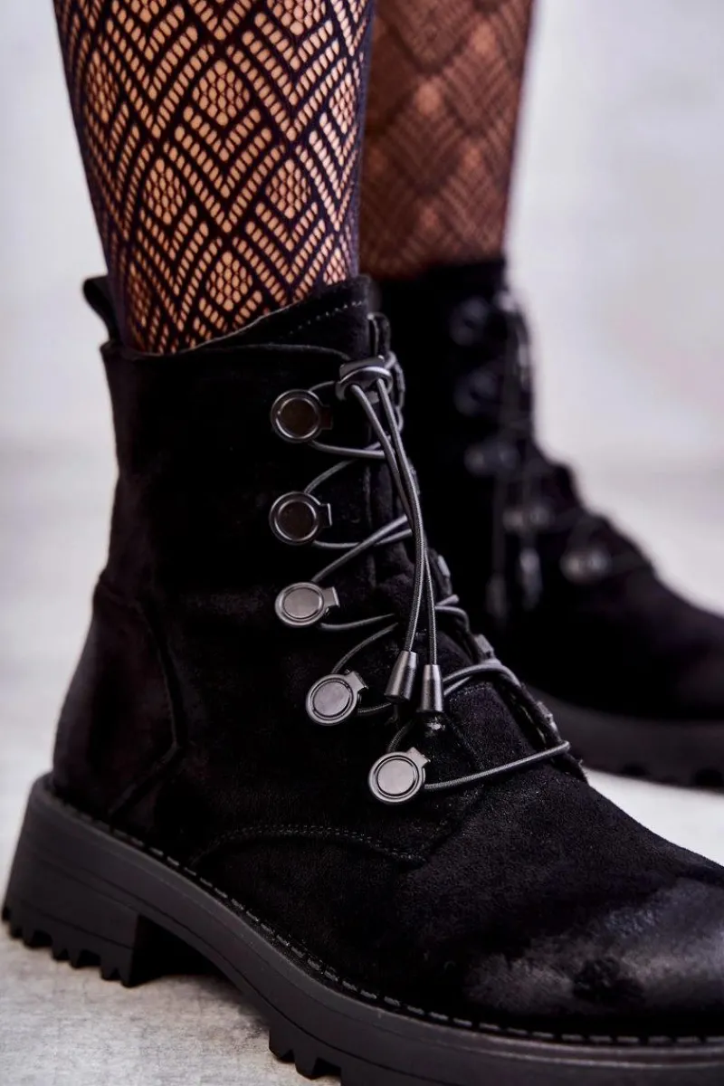 Damskie botki posiadają z przodu ściągacz oraz suwak ułatwiający zakładanie obuwia z boku cholewki. Botki osadzone na płaskim obcasie z bieżnikiem, co gwarantuje stabilność na każdym kroku oraz wygodę w użytkowaniu. Dodatkowo botki posiadają usztywniany zapiętek. Wnętrze tych butów zostało ocieplone kocem obuwniczym. Przy wyborze rozmiaru prosimy sugerować się tabelą rozmiarów.