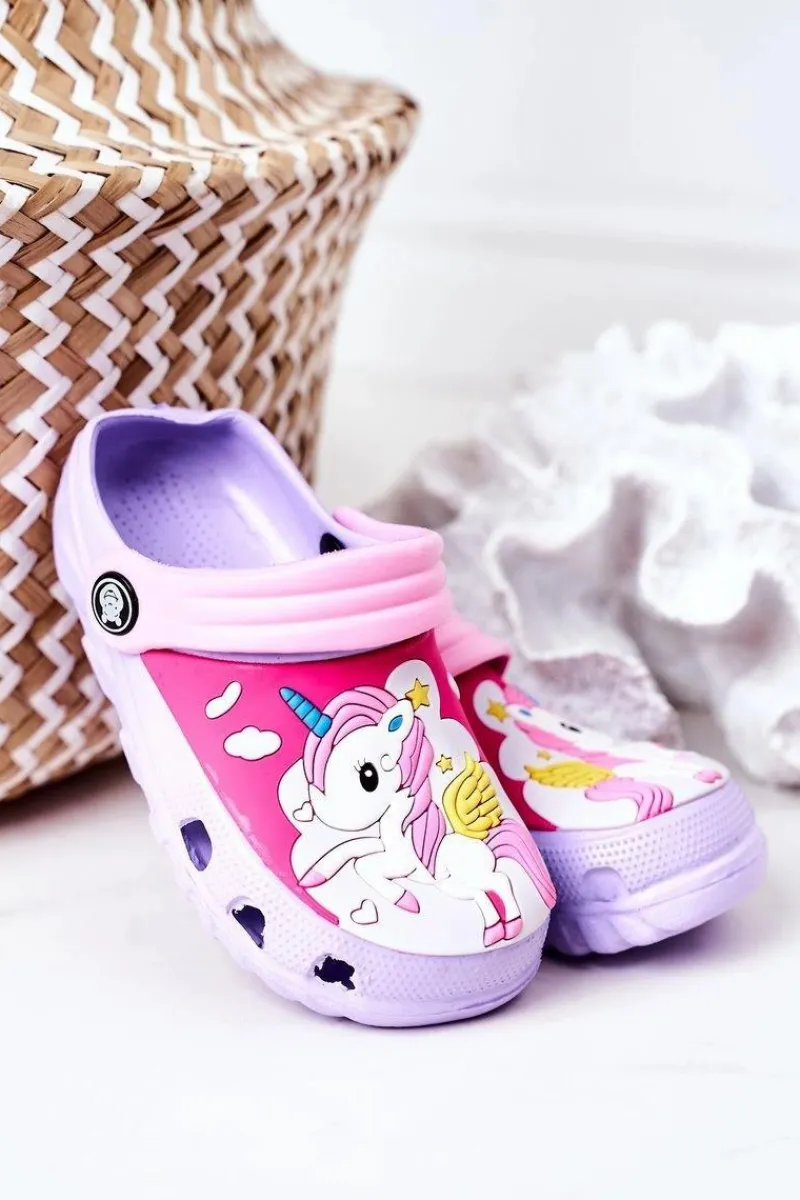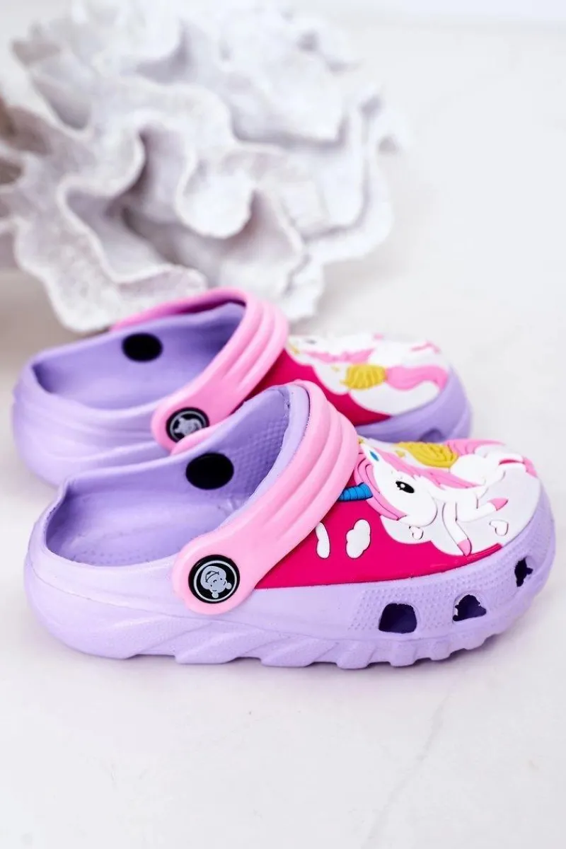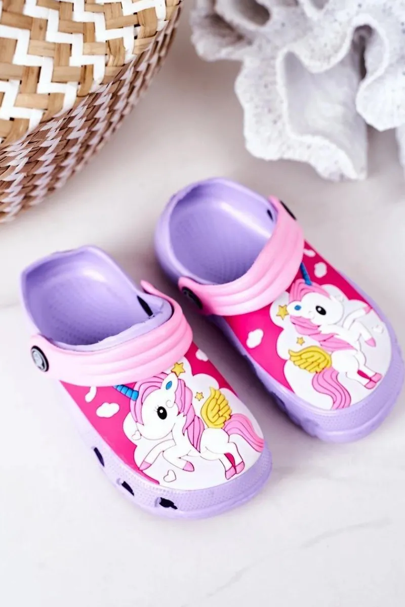Boto Dziecięce Piankowe Klapki Kroksy Z Jednorożcem Fioletowe