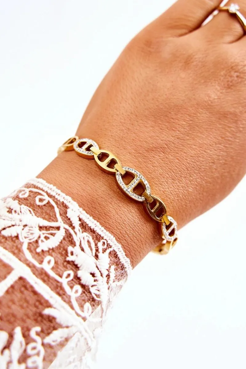 Boto Elegancka Bransoletka Stalowa Z Cyrkoniami Złota