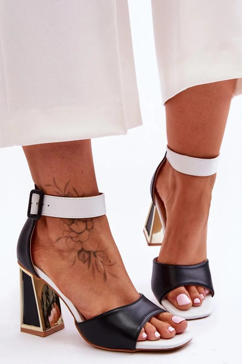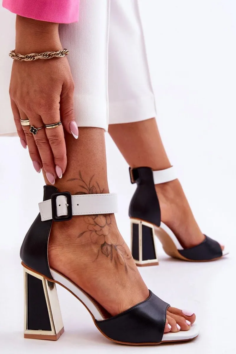 Damskie sandałki zostały wykonane z eko skóry. Świetnie sprawdzą się na wiele okazji podczas letniego sezonu! Miękka wkładka zapewni wygodne użytkowanie. Sandałki posiadają usztywniany zapiętek. Zapinane wokół kostki na regulowany pasek ze sprzączką. Model ten został osadzony na obcasie w postaci zdobionego słupka. Przy wyborze rozmiaru prosimy sugerować się tabelą rozmiarów.