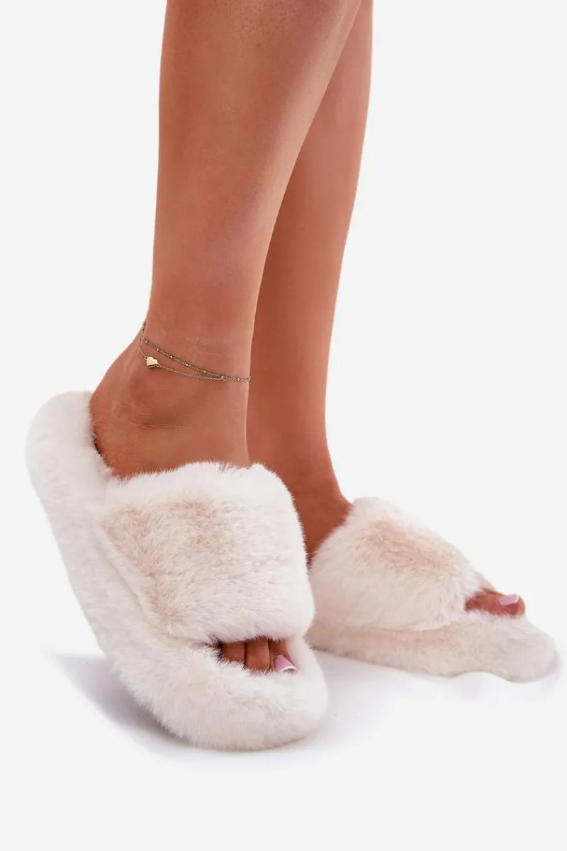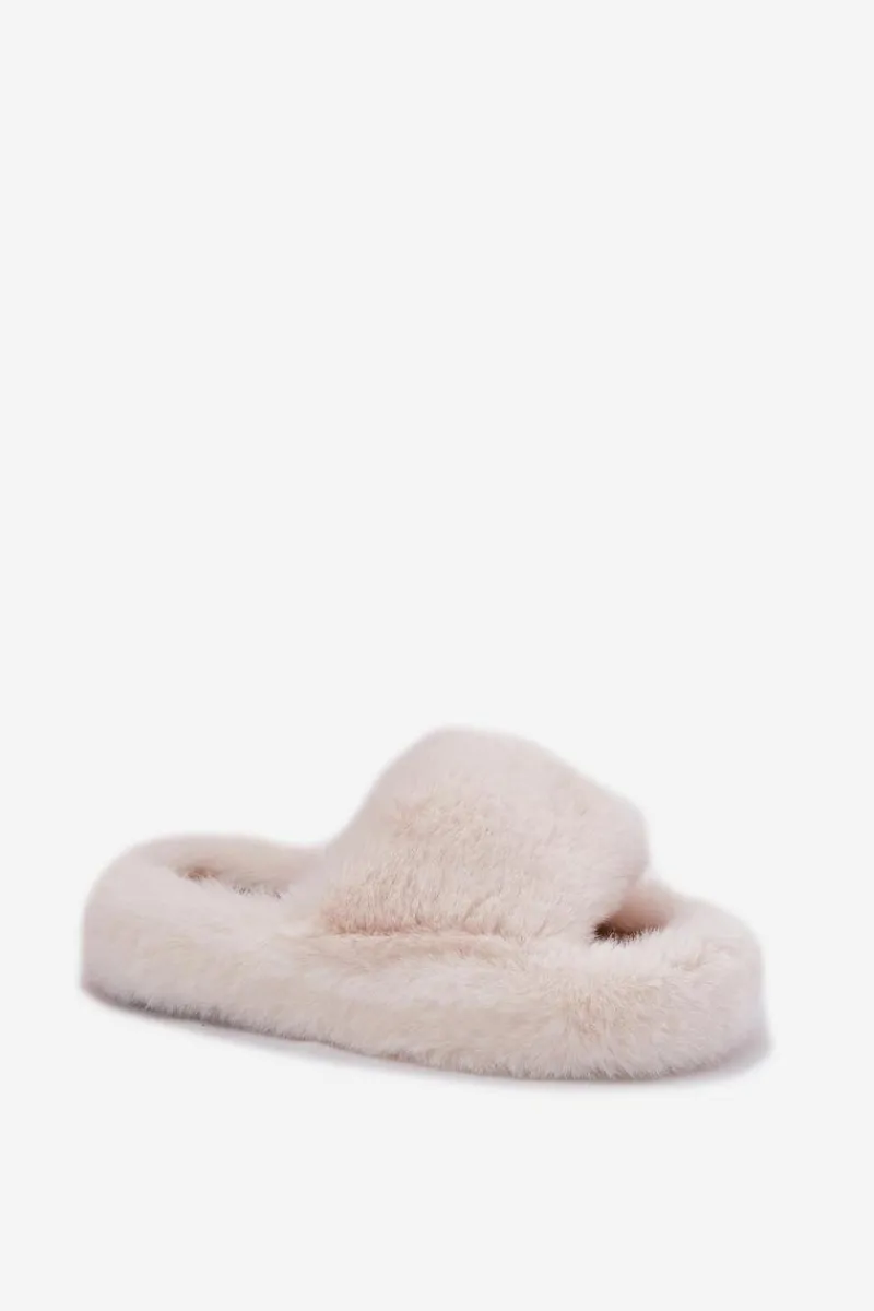 Kapcie damskie zostały wykonane z ekologicznego futerka. Model wsuwany z odkrytym noskiem i szerokim paskiem. Podeszwa wykonana z gumowego tworzywa ochroni przed zimnym podłożem. Przy wyborze rozmiaru prosimy kierować tabelą rozmiarów.