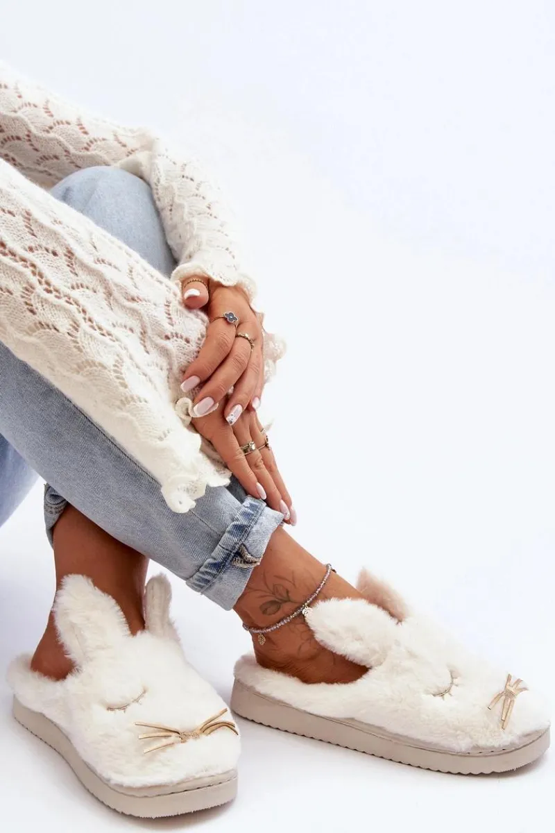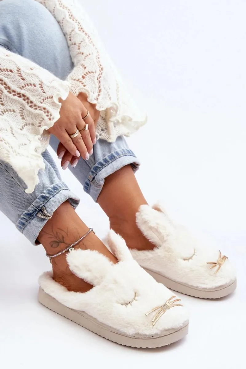 Urocze, wsuwane kapcie damskie. Wykonane z miłego w dotyku futerka. Podeszwa z gumowego tworzywa świetnie odizoluje od zimnego podłoża. Model wsuwany. Noski zakryte. Przy wyborze rozmiaru prosimy sugerować się tabelą rozmiarów.
