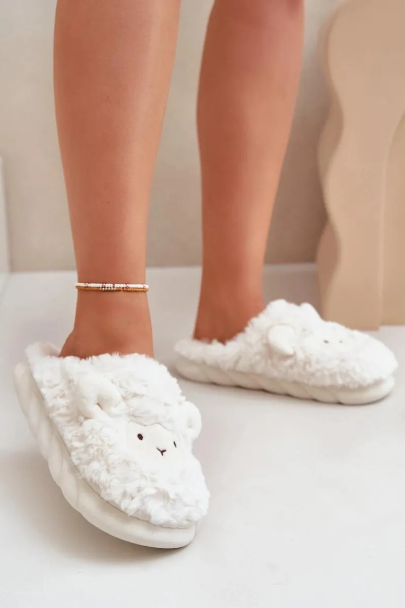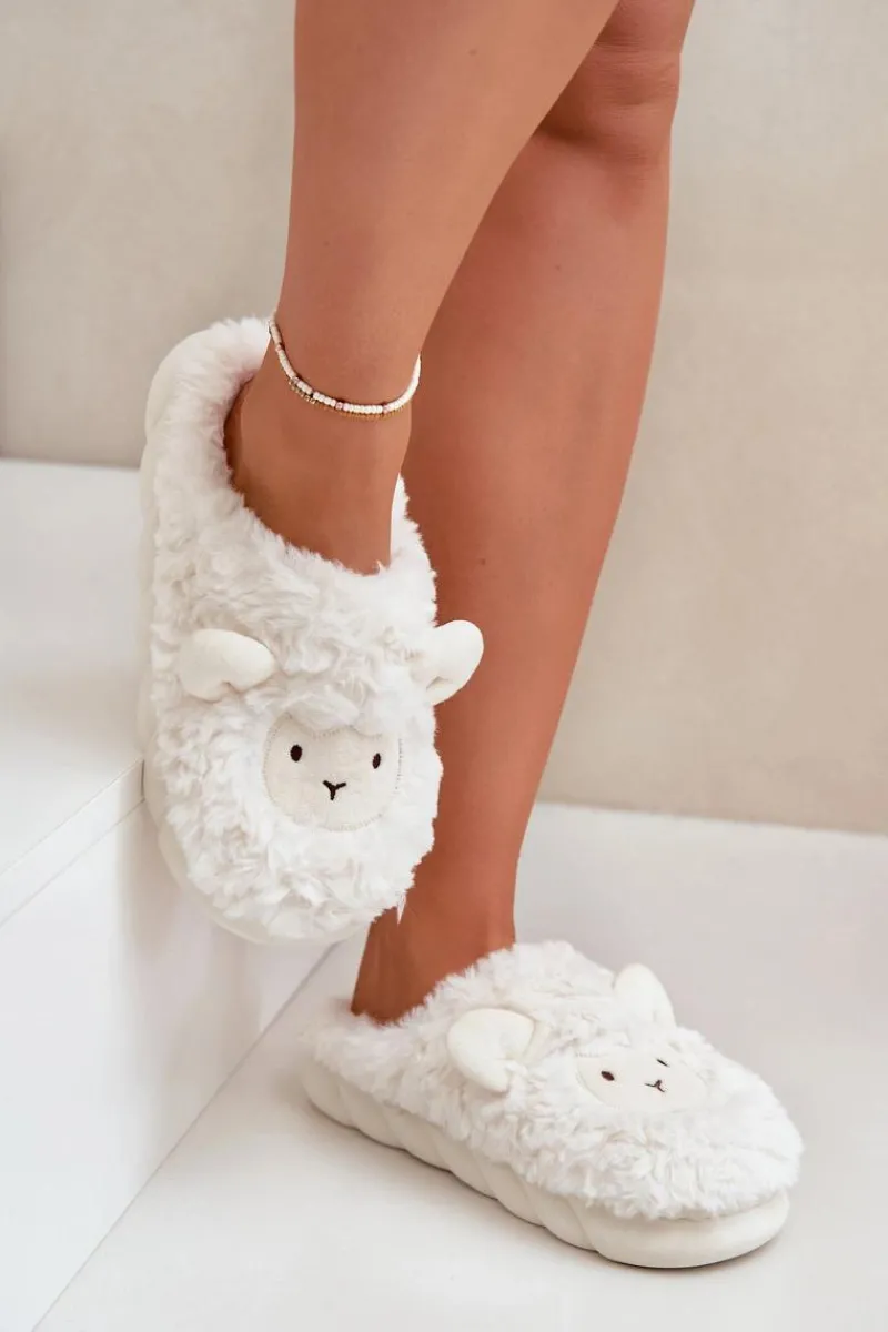 Boto Futrzane Kapcie Damskie Z Motywem Owcy Białe Phaeia