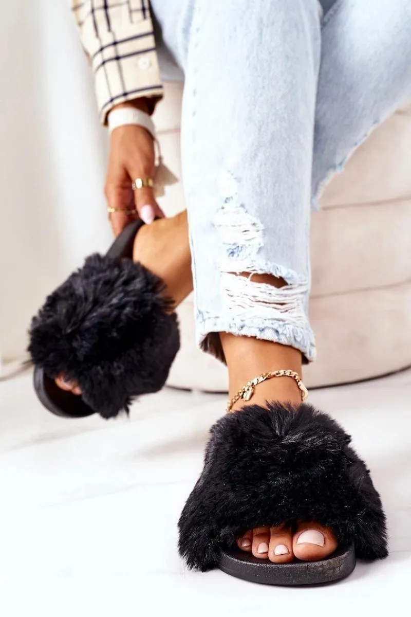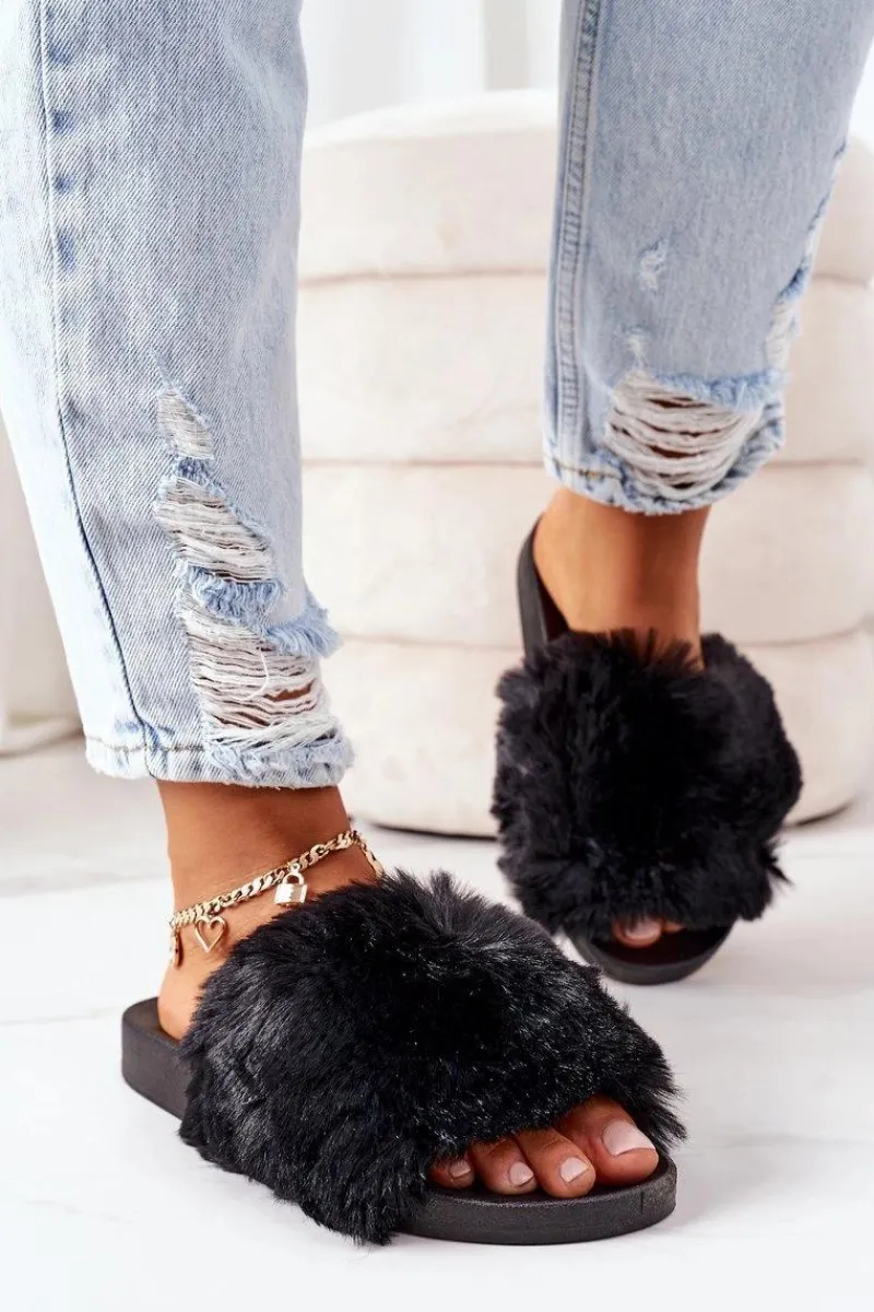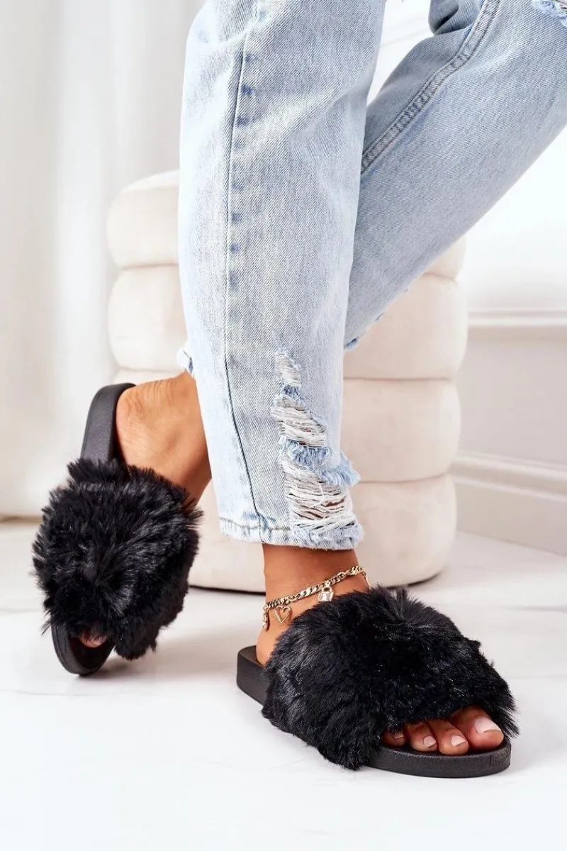 Boto Gumowe Klapki Z Futerkiem Czarne Soft