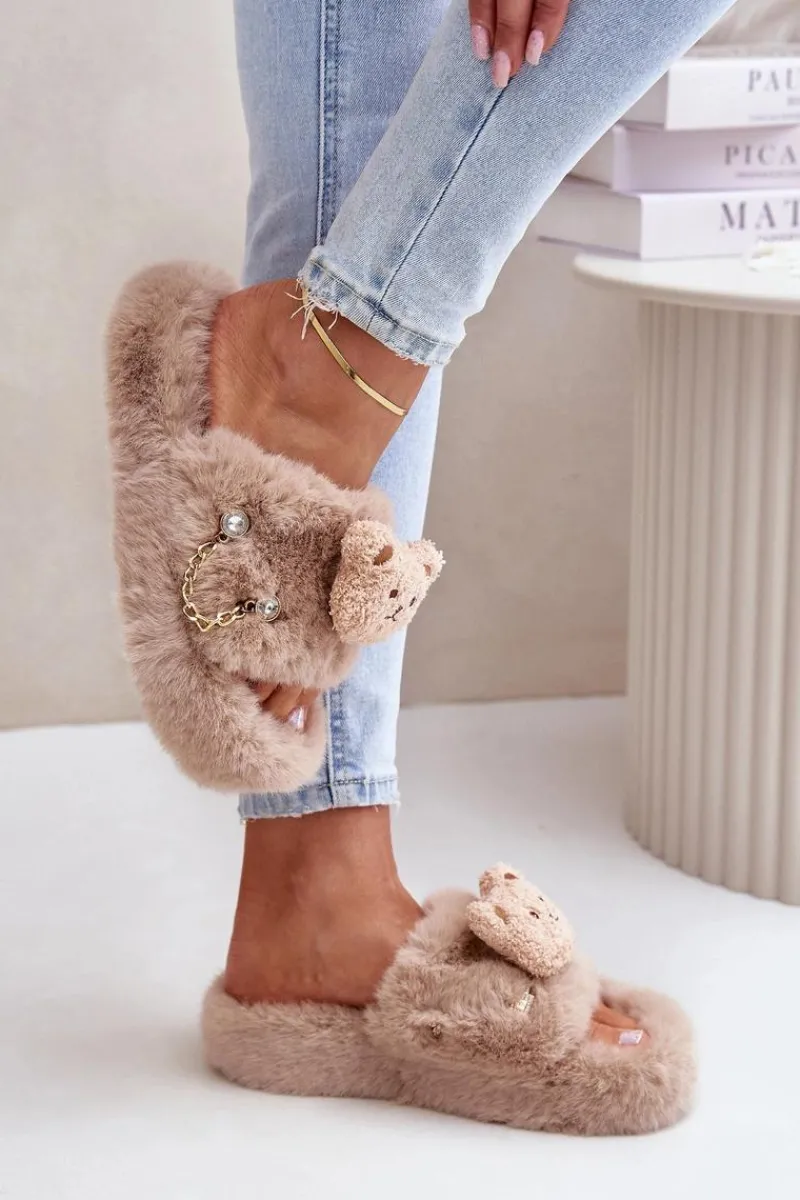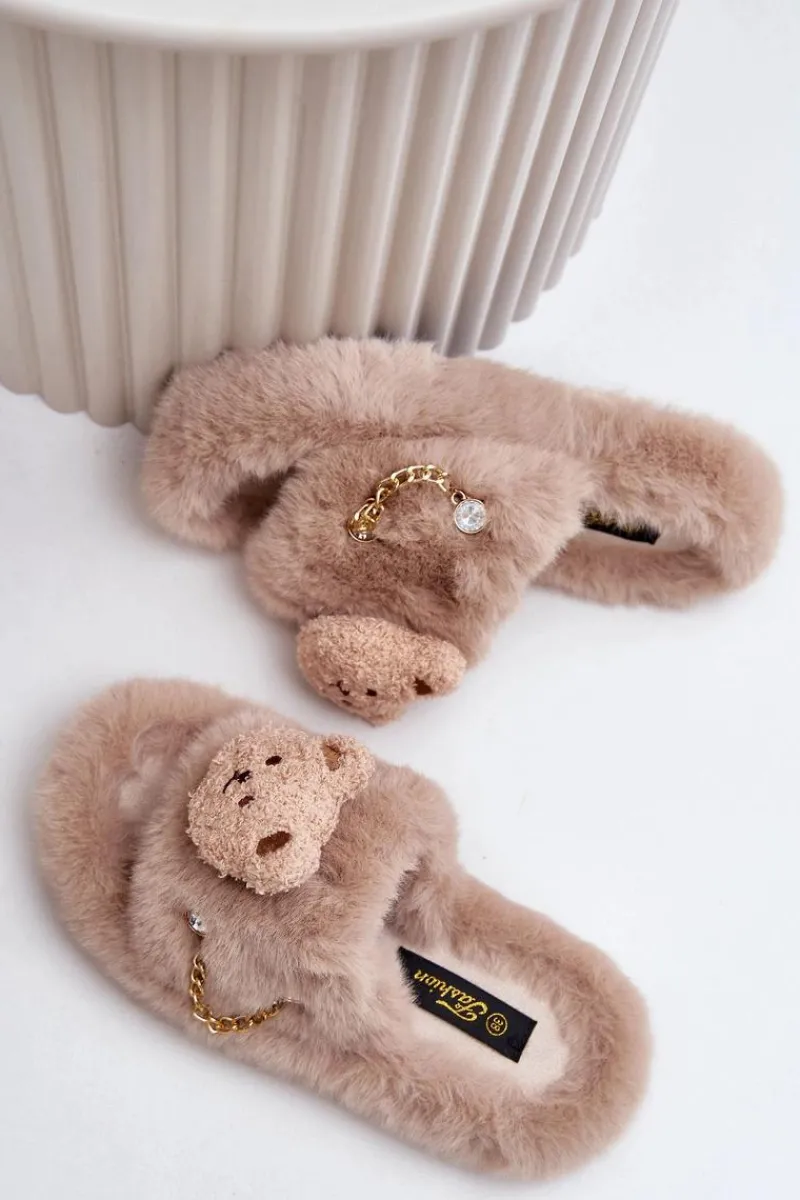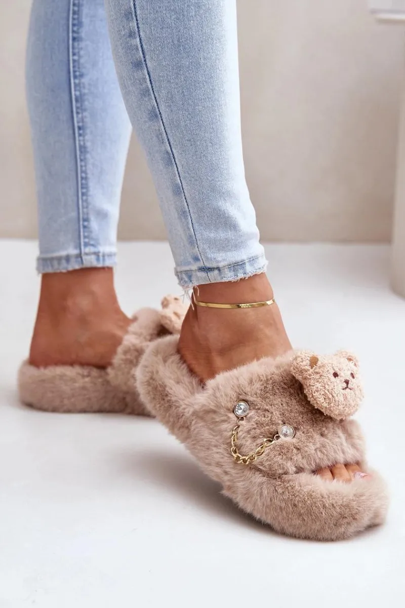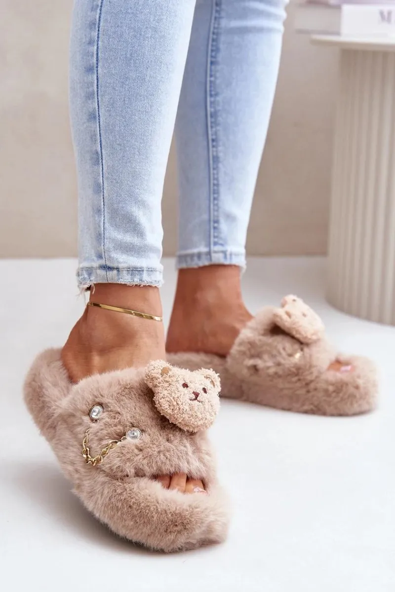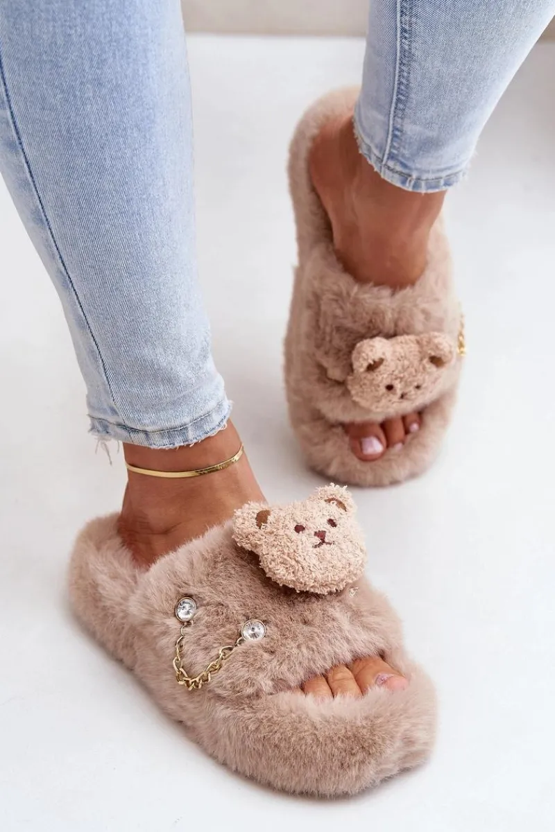 Damskie kapcie futrzane z misiem i ozdobnymi elementami. Charakteryzują się miękkością i przytulnością, gwarantując wyjątkowy komfort oraz ciepło dla stóp. Ozdobny miś nadaje im zabawny, a jednocześnie stylowy wygląd, co czyni je nie tylko praktycznymi, ale także efektownymi. Idealne do domowego relaksu, te kapcie łączą wygodę z modnym wzornictwem. Przy wyborze rozmiaru prosimy kierować tabelą rozmiarów.