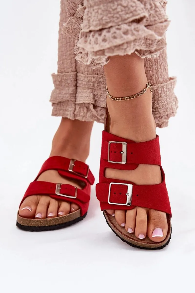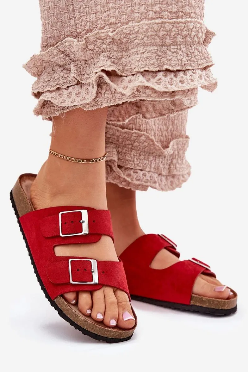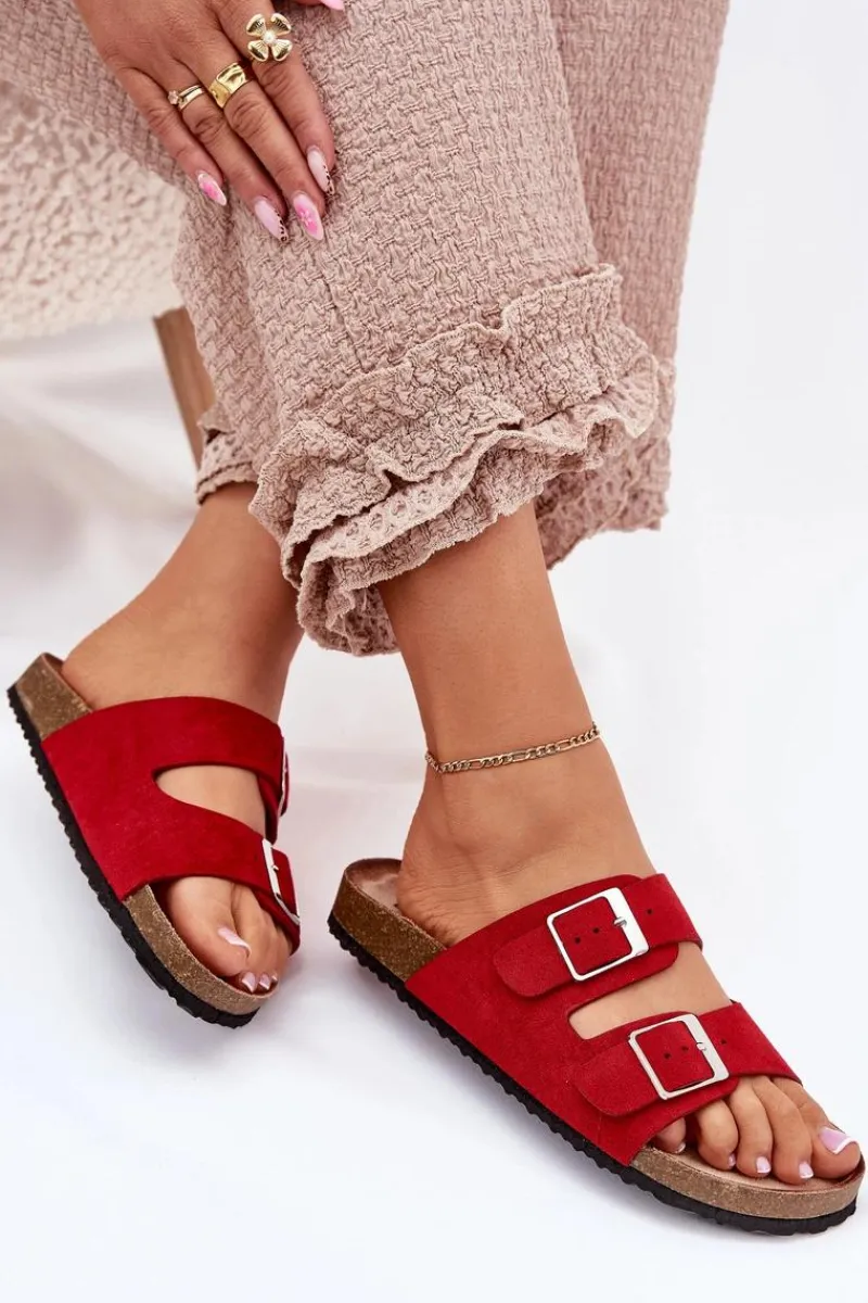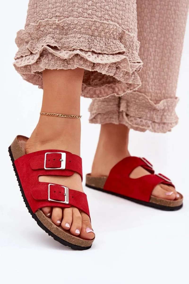 Klapki damskie z eko zamszu to połączenie stylu i wygody na co dzień. Wyposażone w dwa regulowane paski z klamrami, które umożliwiają idealne dopasowanie do stopy. Profilowana wkładka zapewnia komfort, a korkowa platforma dodaje lekkości i stabilności. Doskonałe na codzienne stylizacje, łączą funkcjonalność z modnym wyglądem. Przy wyborze rozmiaru prosimy sugerować się tabelą rozmiarów.