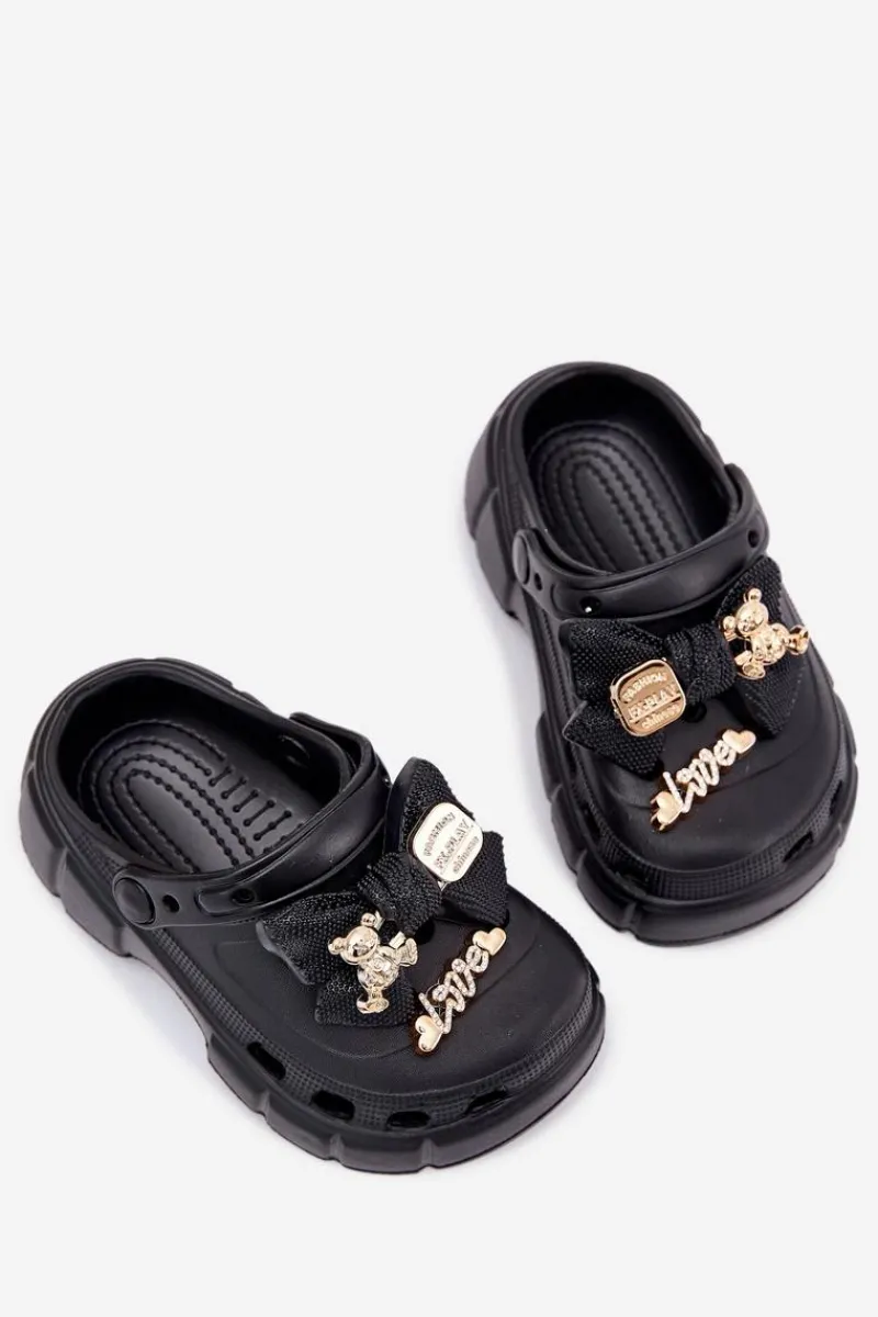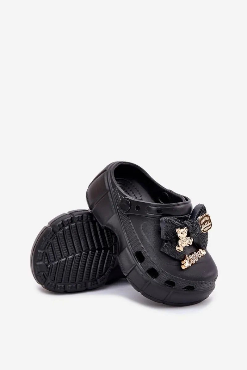Klapki dla dziewczynek wykonane z piankowego tworzywa to urocza i wygodna opcja na ciepłe dni. Zakryte, szerokie noski zapewniają komfort, a kokardka i złote ozdoby nadają im wyjątkowego uroku. Idealne dla małych modnisi! Przy wyborze rozmiaru prosimy sugerować się tabelą rozmiarów.