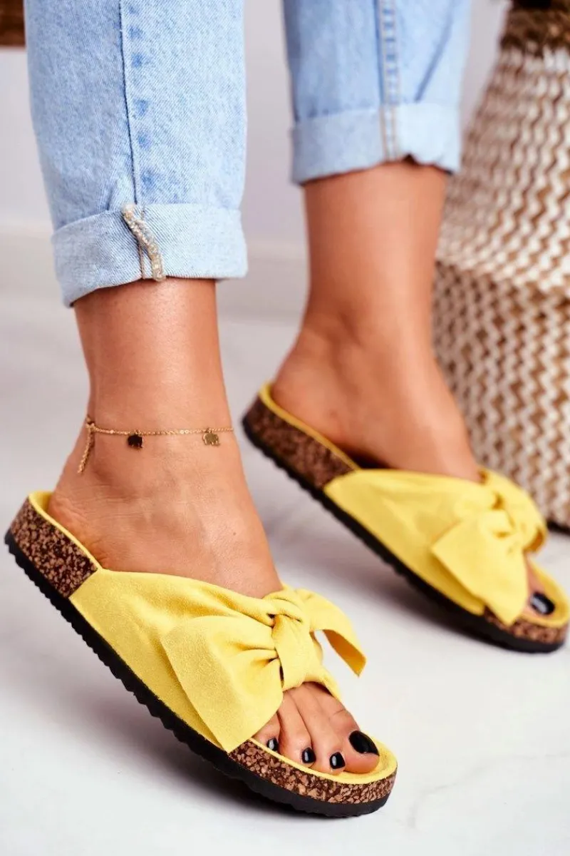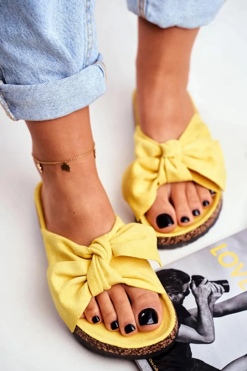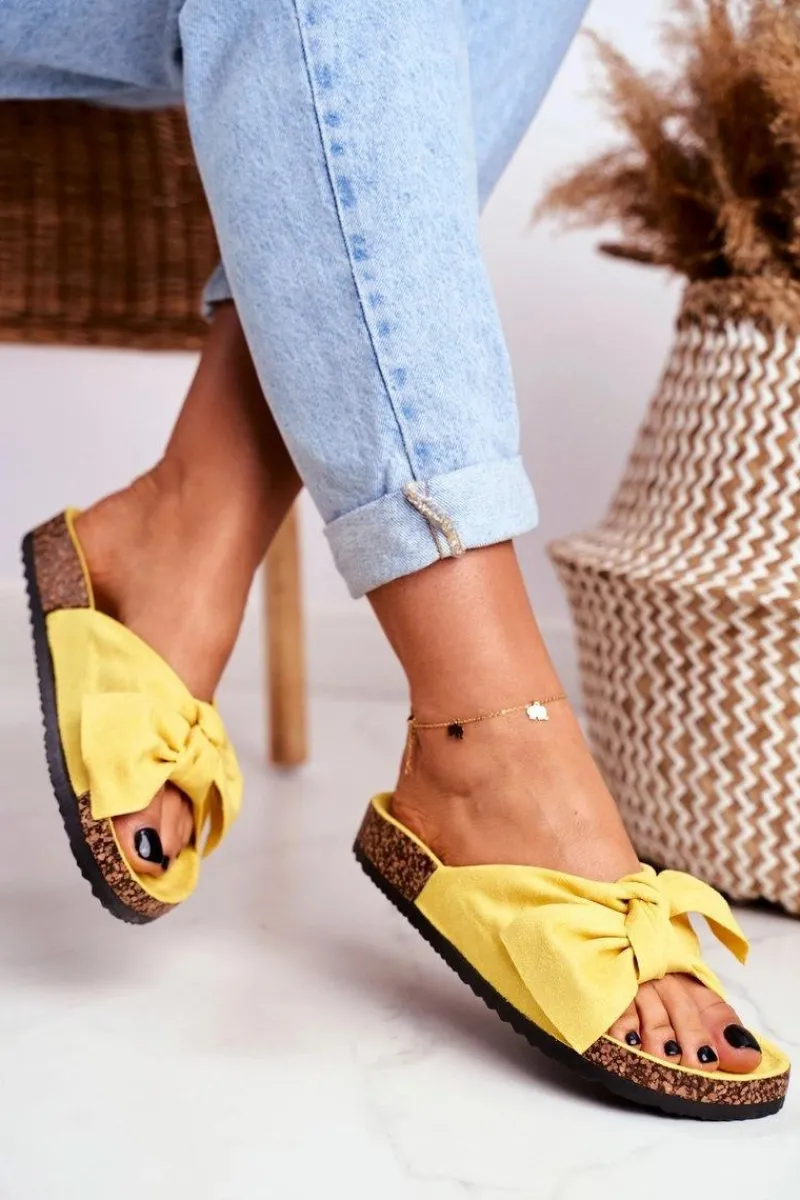 Boto Klapki Na Korkowej Podeszwie Żółte Wendy
