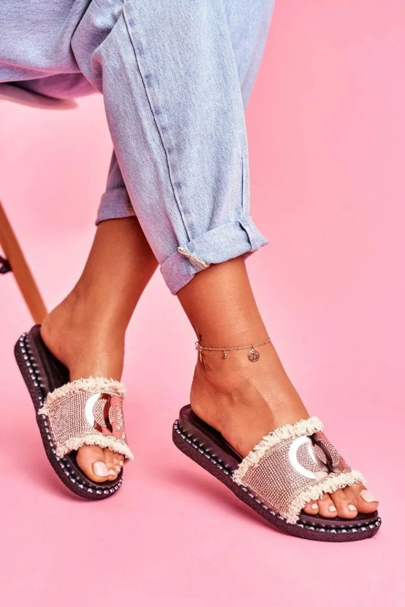 Hot Boto Damskie Klapki Z Kokardą I Cyrkoniami Różowe Jolene