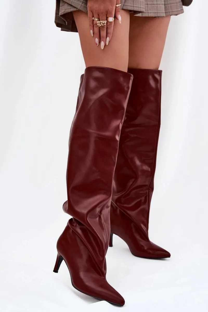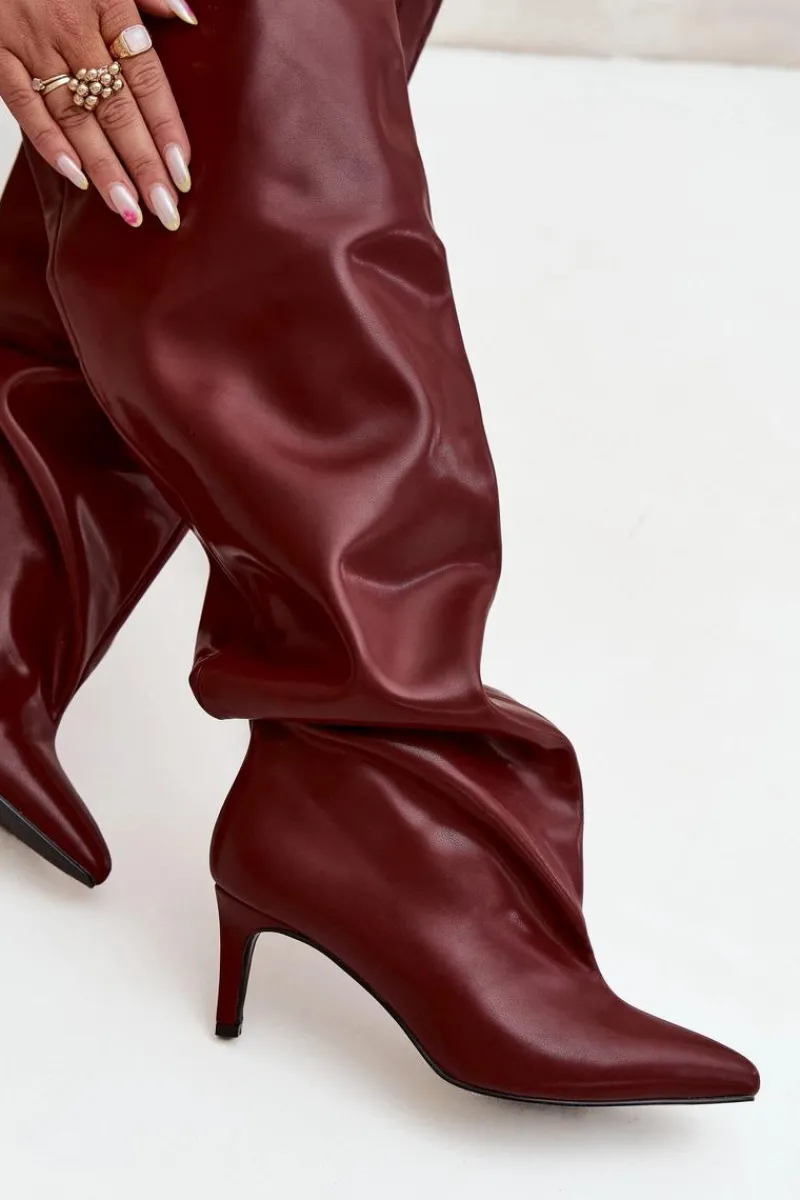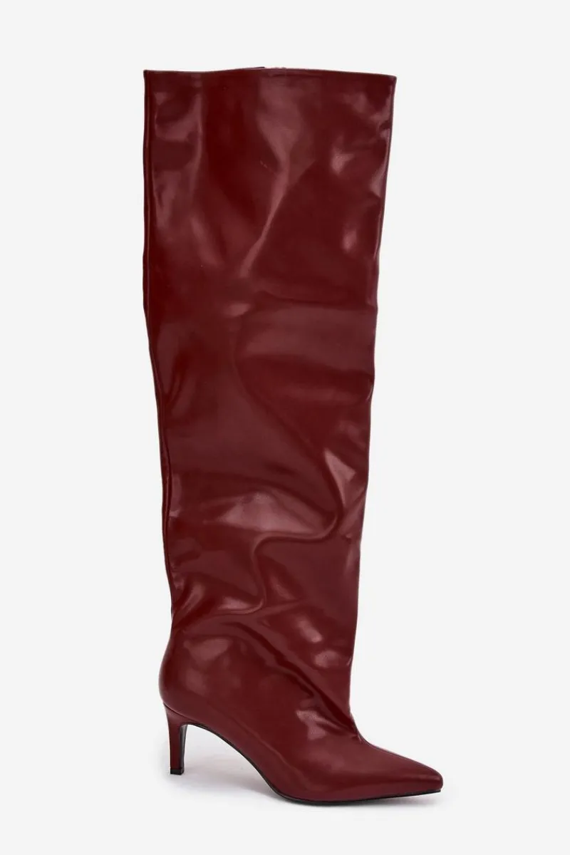 FAQ — Kozaki damskie na szpilce wsuwane bordowy Mavilla