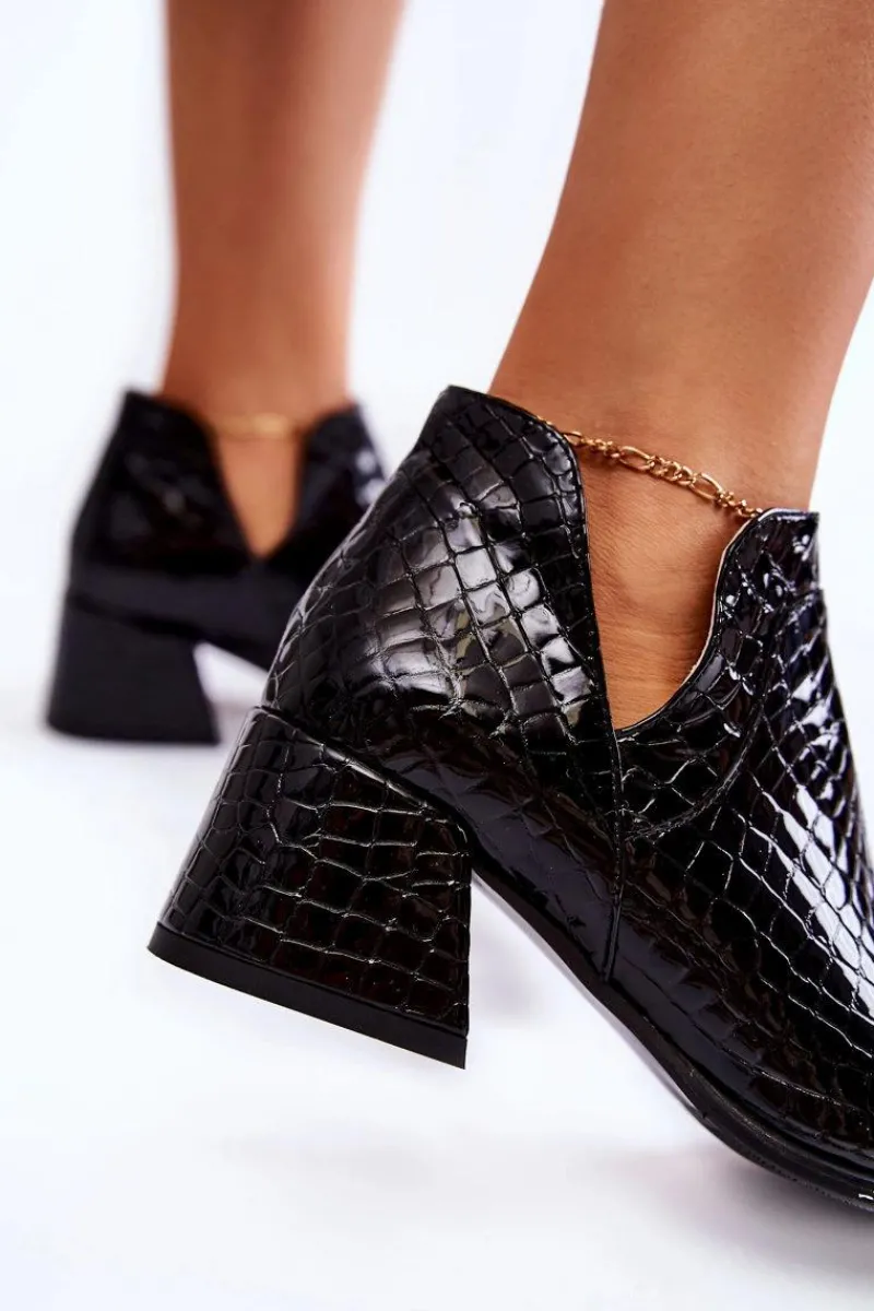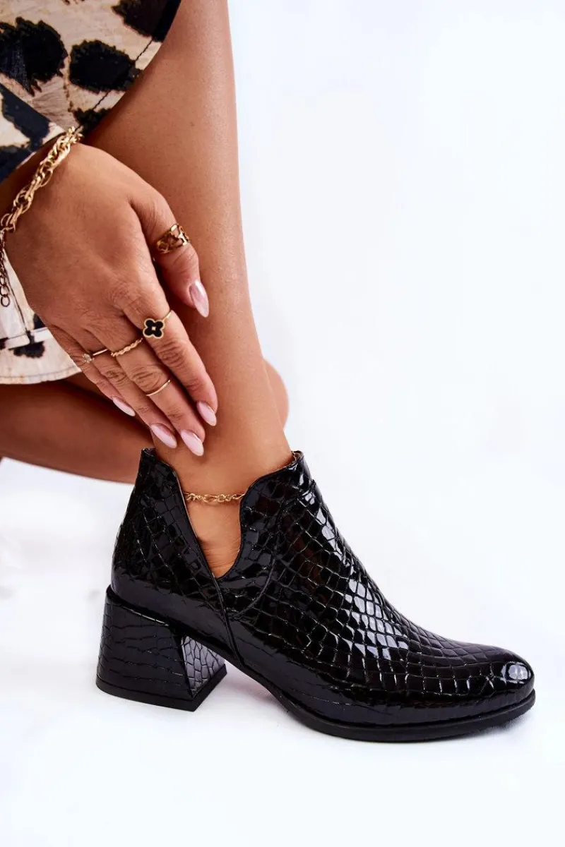 Boto Lakierowane Botki Z Wycięciami Krokodyli Wzór Czarne Dalros