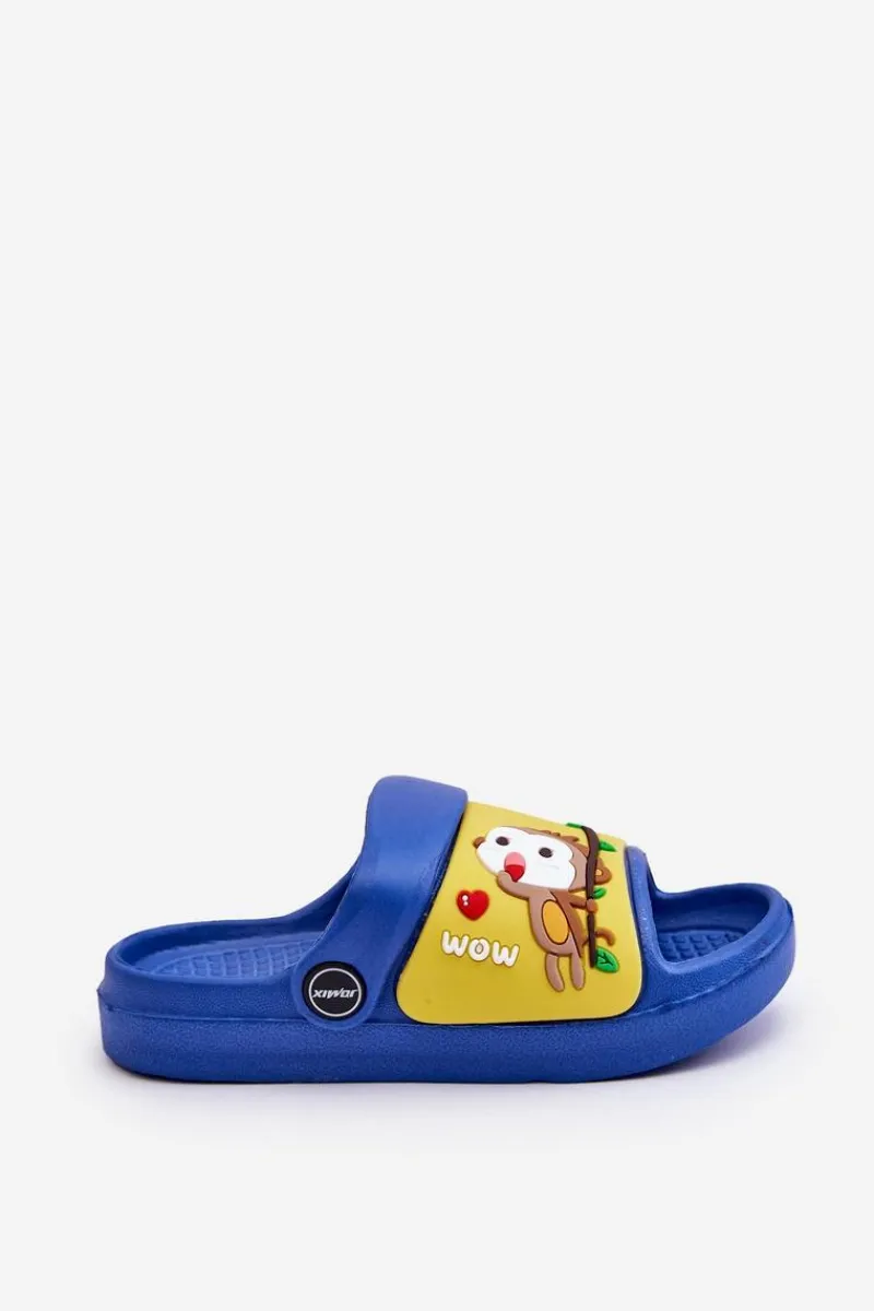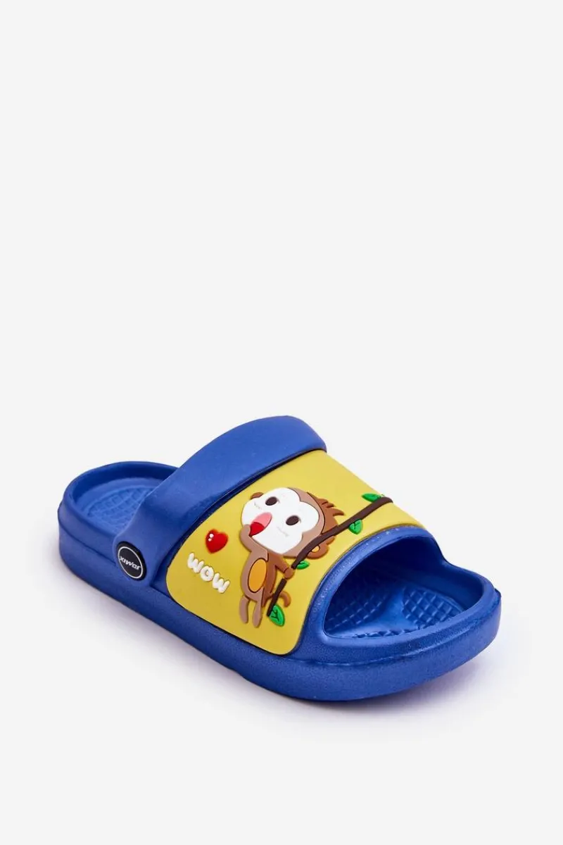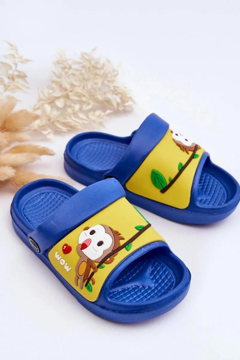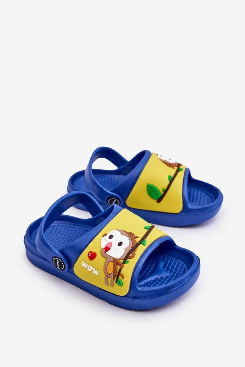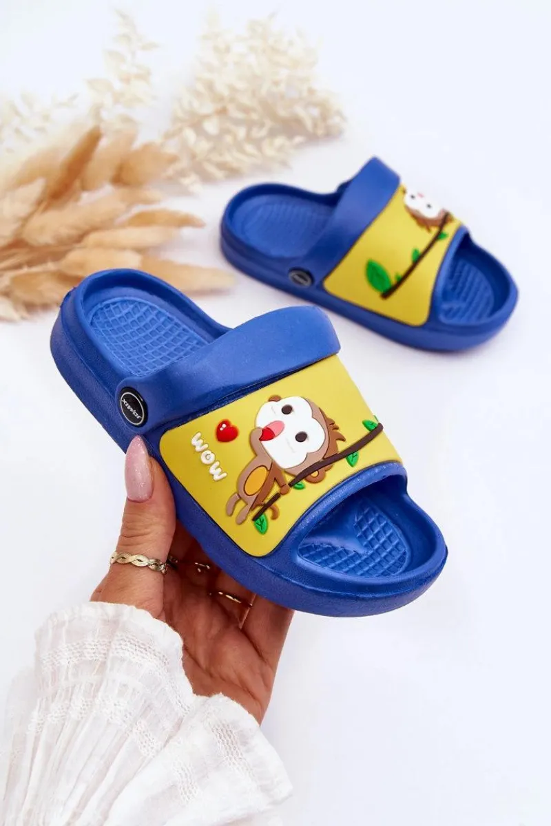 Boto Lekkie Dziecięce Klapki Sandałki Z Motywem Zwierzątka Niebiesko-Żółte Rico