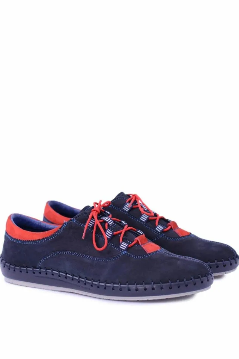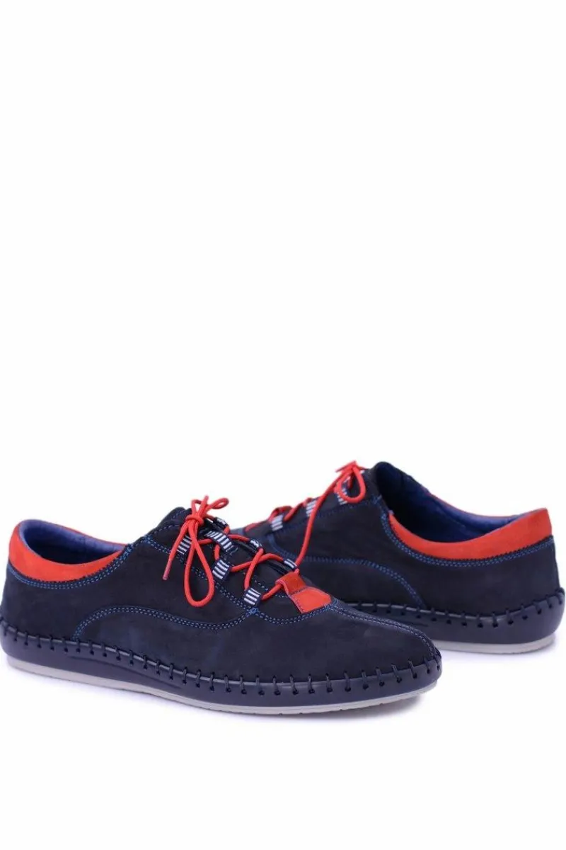 Boto Męskie Skórzane Półbuty Casual Granatowe Bill