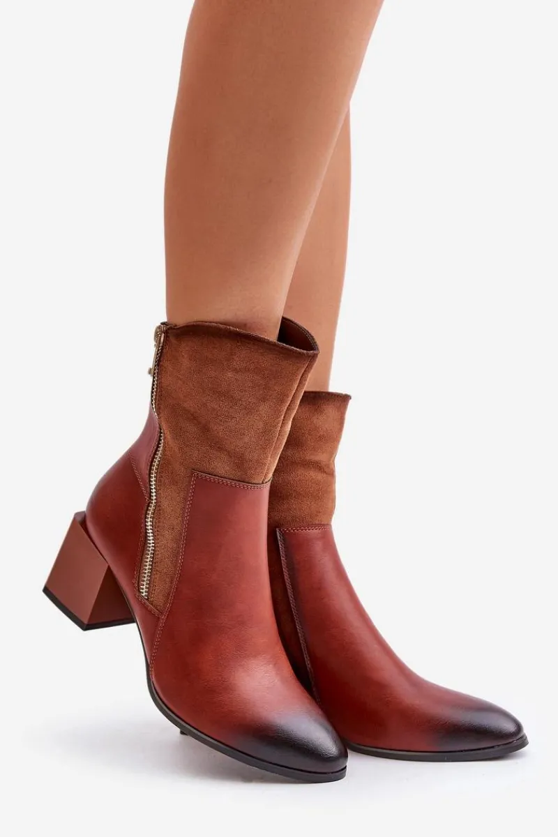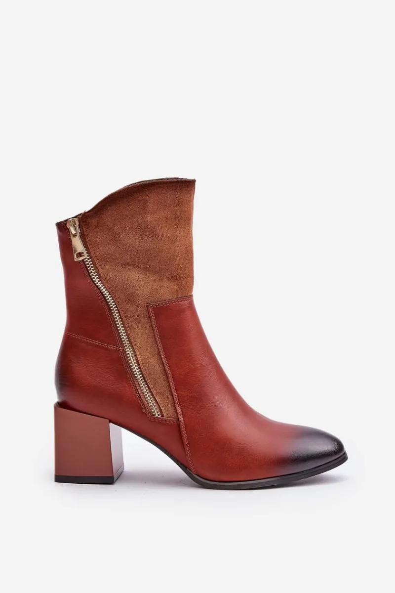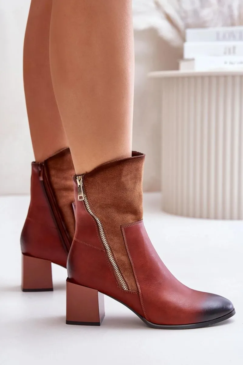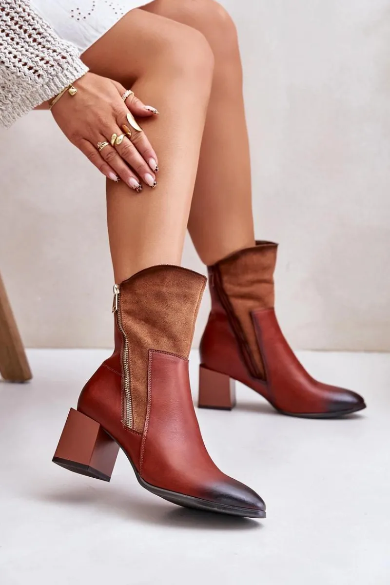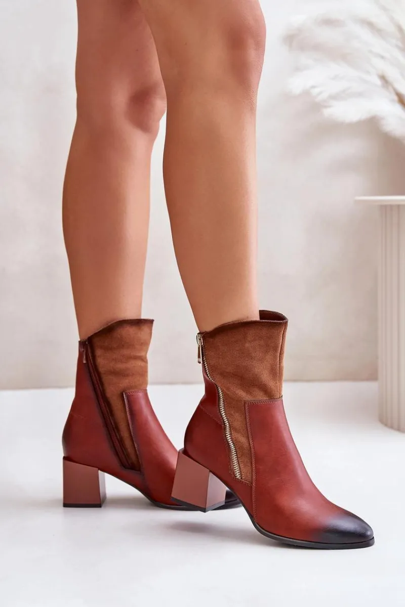 Damskie botki wykonane z eko skóry, osadzone na stabilnym obcasie typu słupek. Zapinane na zamek, z dodatkowym ozdobnym suwakiem, który dodaje charakteru. Wnętrze ocieplone kocem obuwniczym, zapewniającym ciepło i wygodę w chłodniejsze dni. Idealny wybór dla kobiet ceniących styl i komfort. Przy wyborze rozmiaru prosimy sugerować się tabelą rozmiarów.