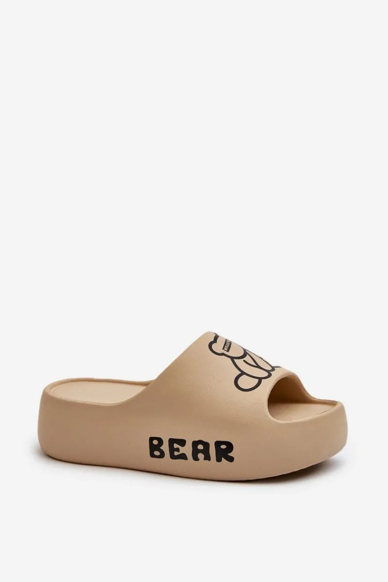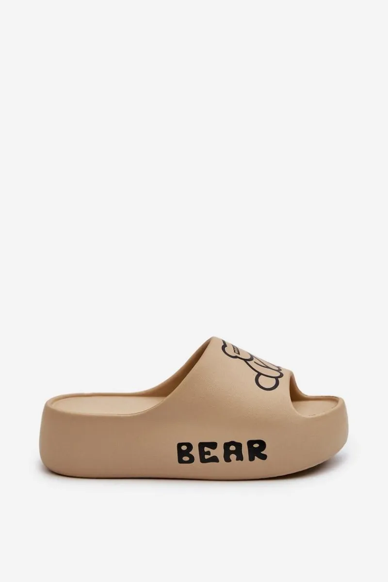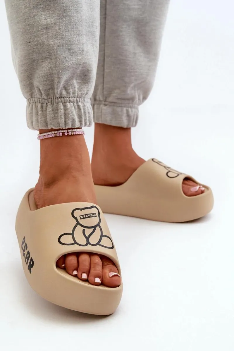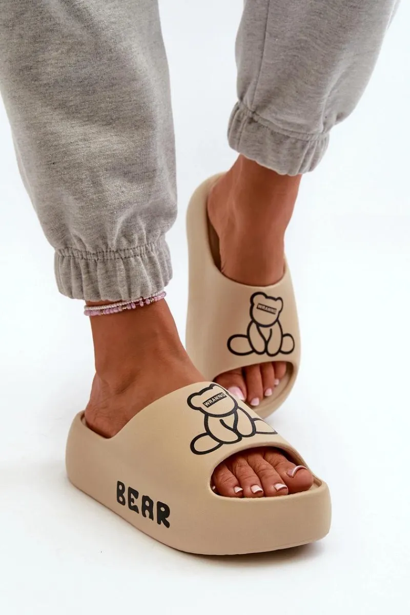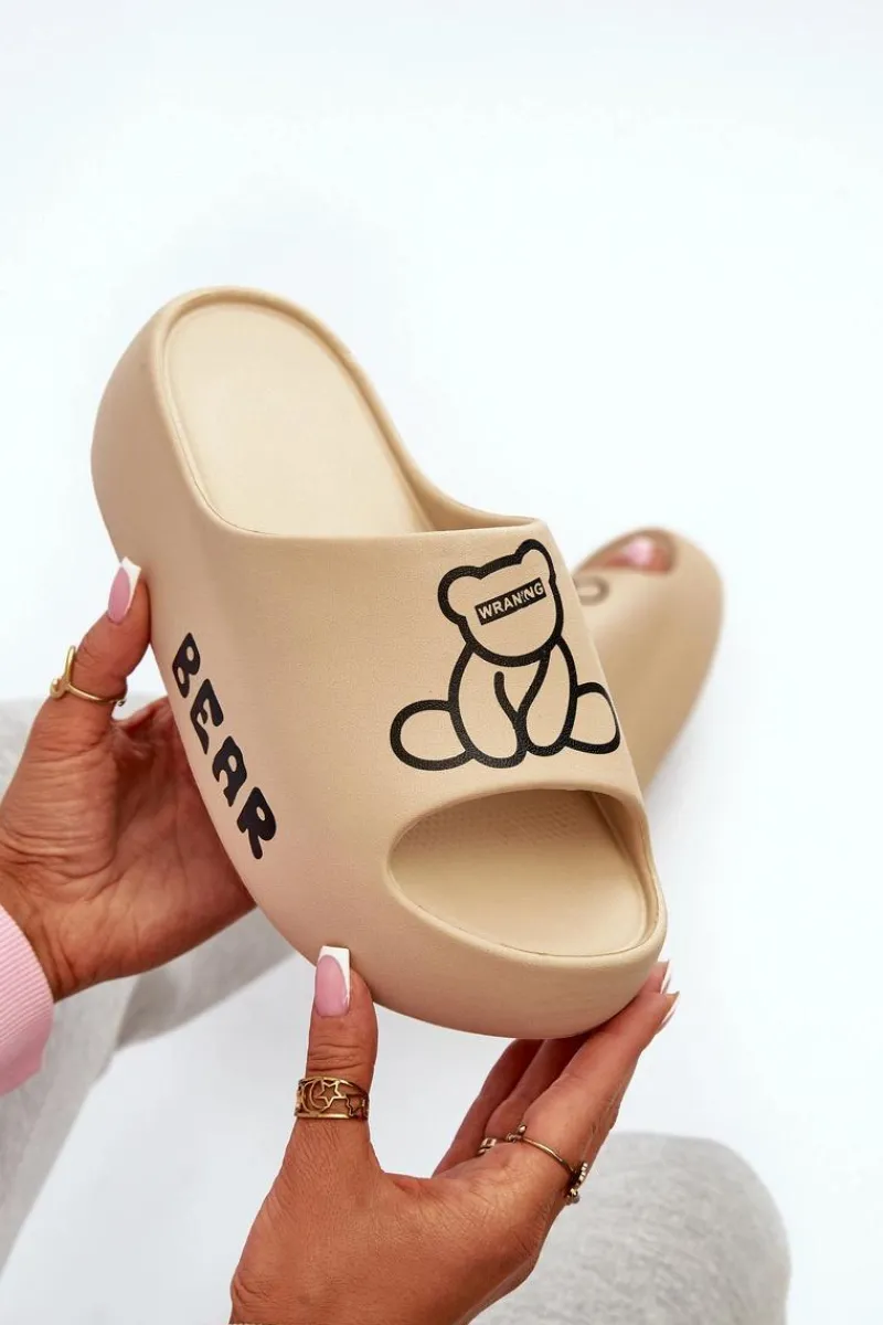 Lekkie damskie klapki na basen wykonane z piankowego tworzywa. Osadzone na masywnej podeszwie. Te urocze klapki zdobi nadruk z motywem misia, który dodaje im wyjątkowego charakteru. Idealne do codziennego użytku na, łączą wygodę i styl w jednym. Przy wyborze rozmiaru prosimy sugerować się tabelą rozmiarów.