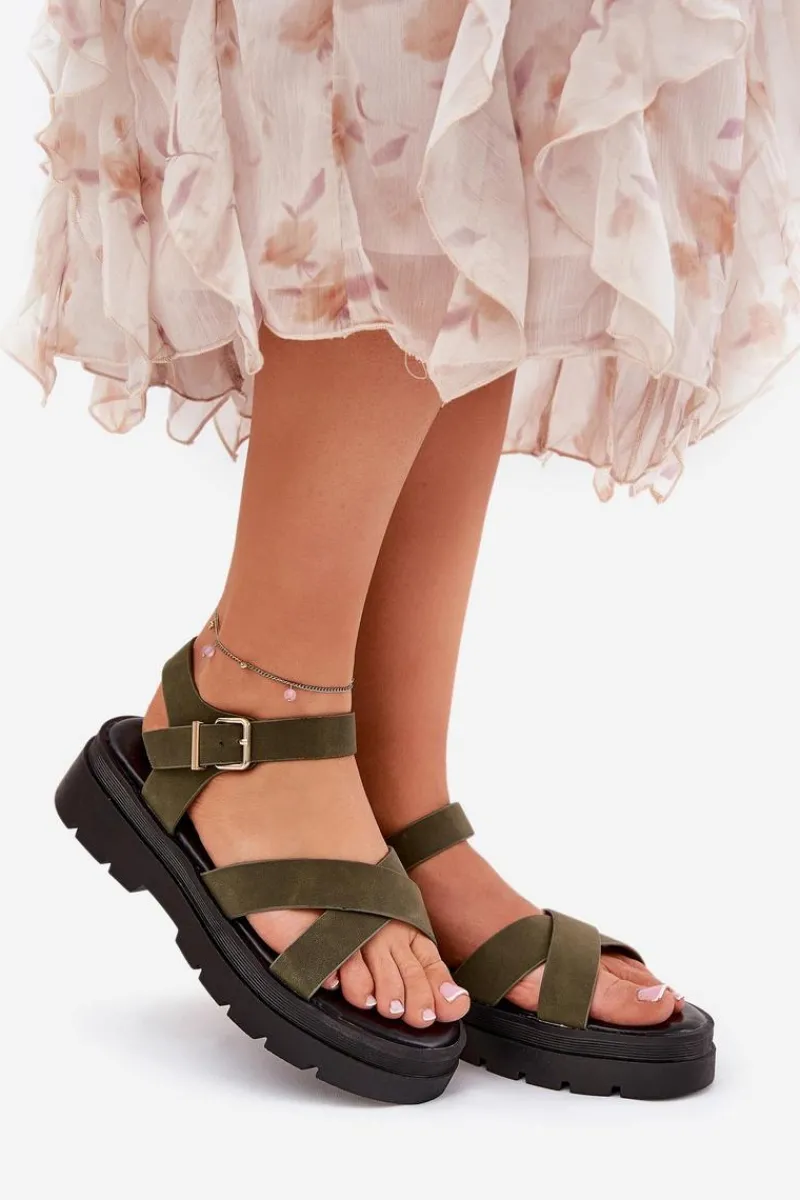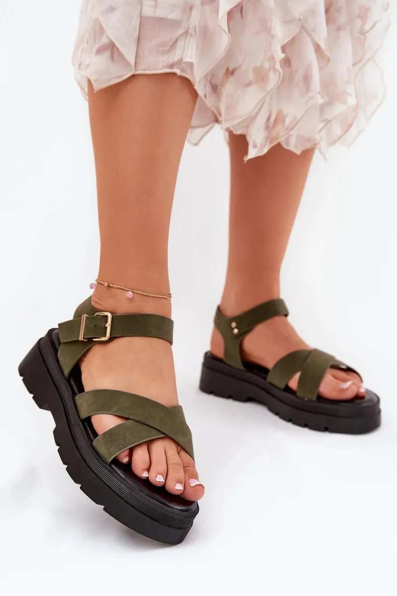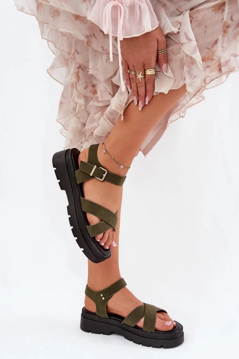 Boto Sandały Damskie Na Platformie Z Eko Skóry Ciemnozielone Gevinniser Zielony