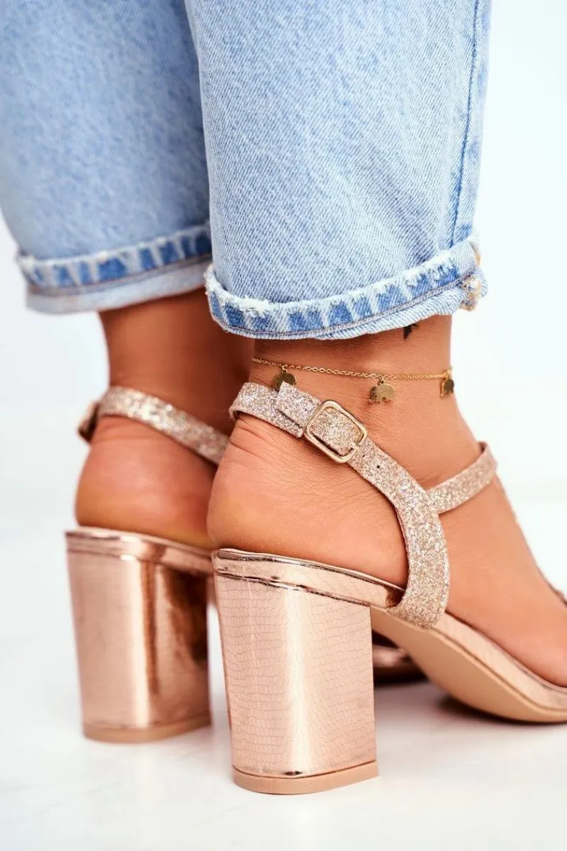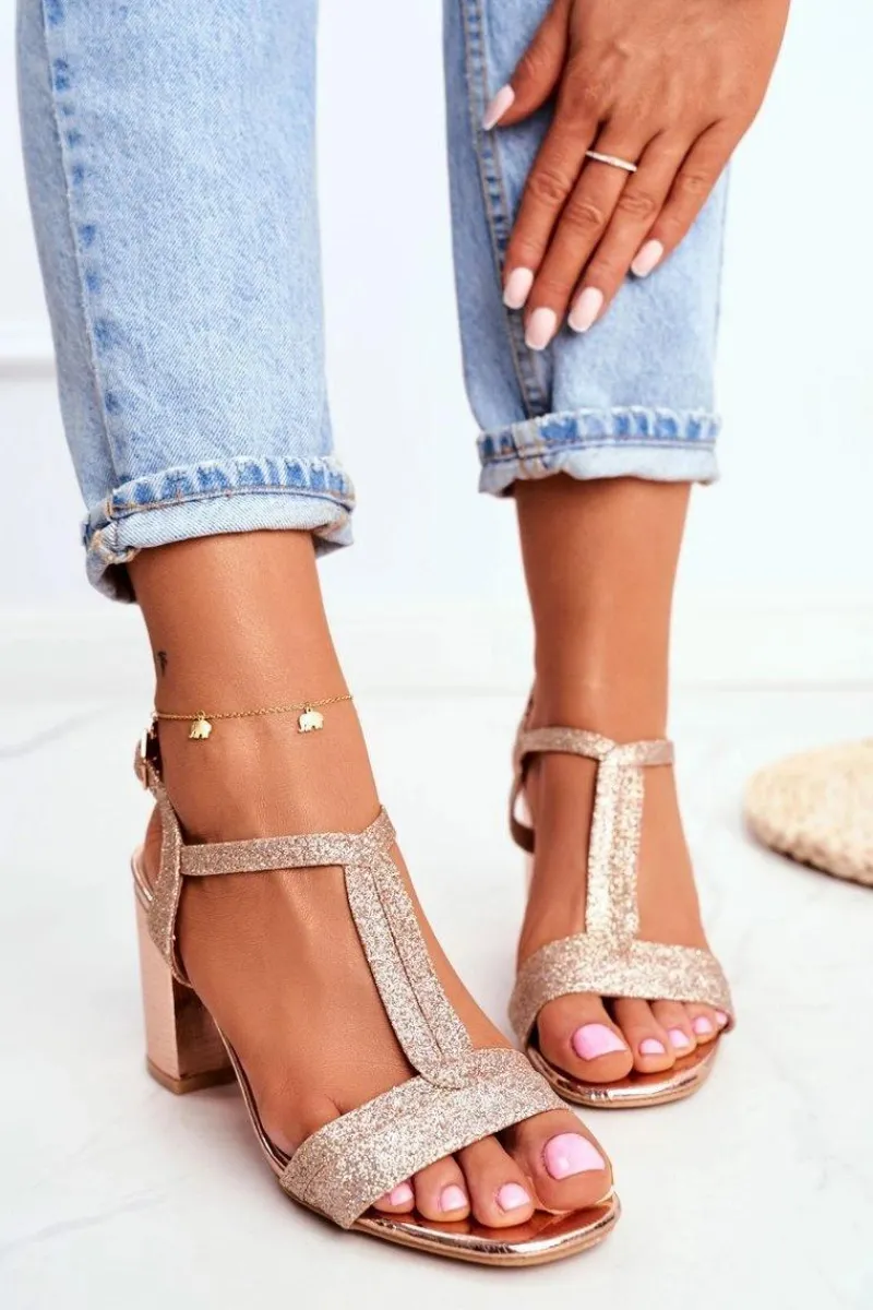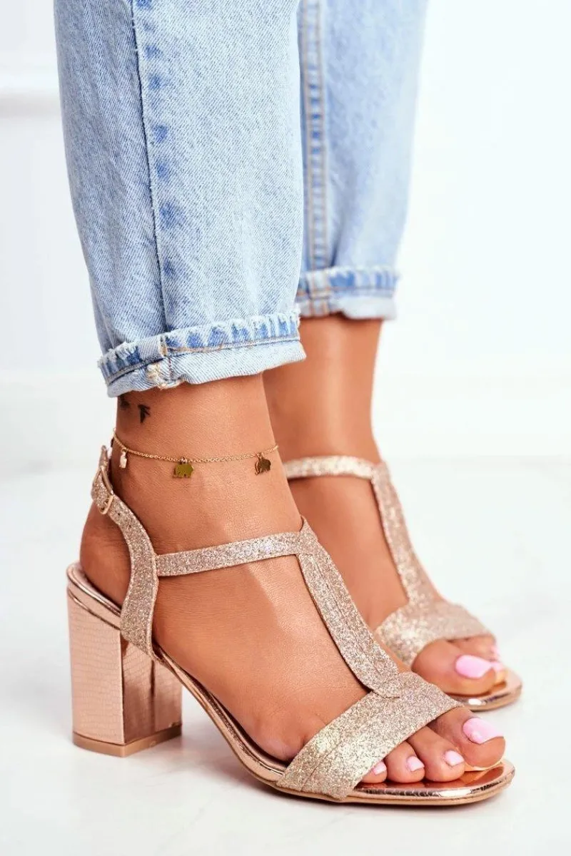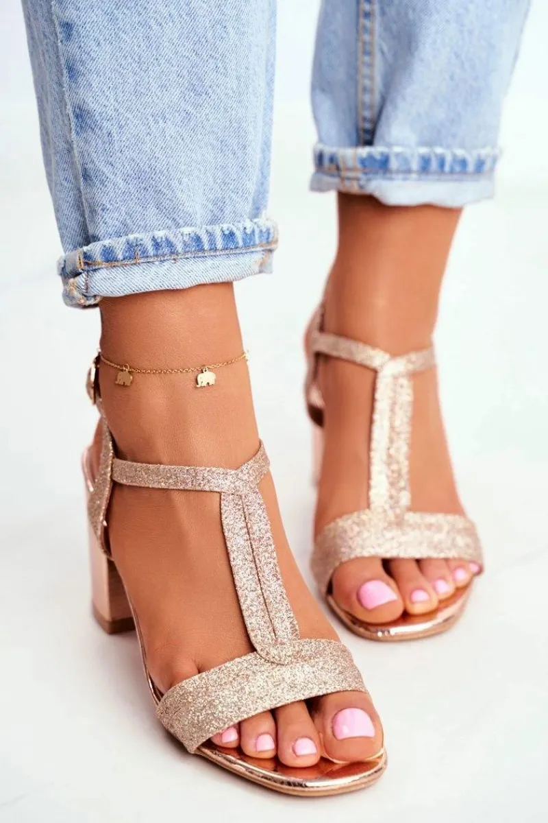 Boto Sandały Damskie Na Słupku Brokatowe Champagne Perfecto