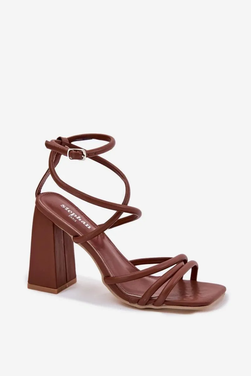 Sandały damskie z eko skóry, osadzone na obcasie w formie słupka, to doskonała propozycja na różne okazje. Zapinane na sprzączkę, zapewniają wygodne dopasowanie do stopy. Model ten wyróżnia się paskami oplatającymi nogę, które dodają wyjątkowego, stylowego charakteru. Doskonałe zarówno na wieczorne wyjścia, jak i na bardziej formalne wydarzenia, łączą komfort z modnym wyglądem. Przy wyborze rozmiaru prosimy sugerować się tabelą rozmiarów.