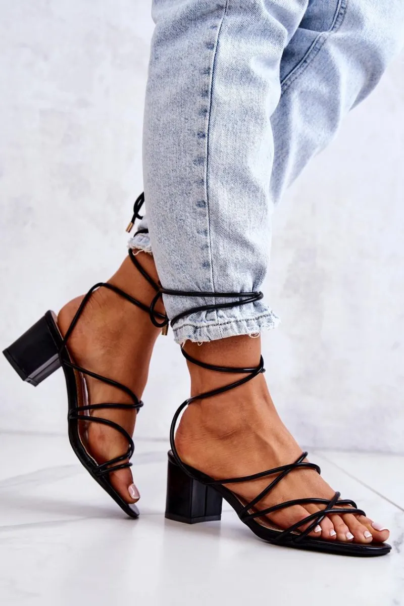 Wygodne i wyjątkowe sandały to marzenie każdej z nas. Buty wykonane z eko skóry. Posiadają wiązanie wokół łydki zakończone metalowymi elementami. Miękka wkładka zapewni komfort przez dłuższy czas. Obcas w postaci słupka delikatnie uniesie sylwetkę. Koniecznie musisz je mieć! Nie czekaj dłużej! Przy wyborze rozmiaru prosimy sugerować się tabelą rozmiarów.