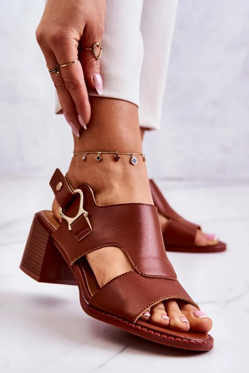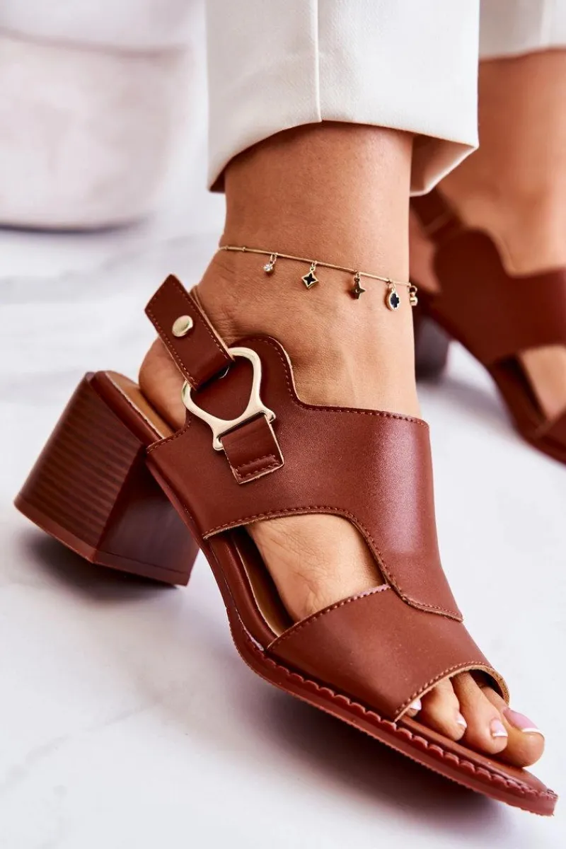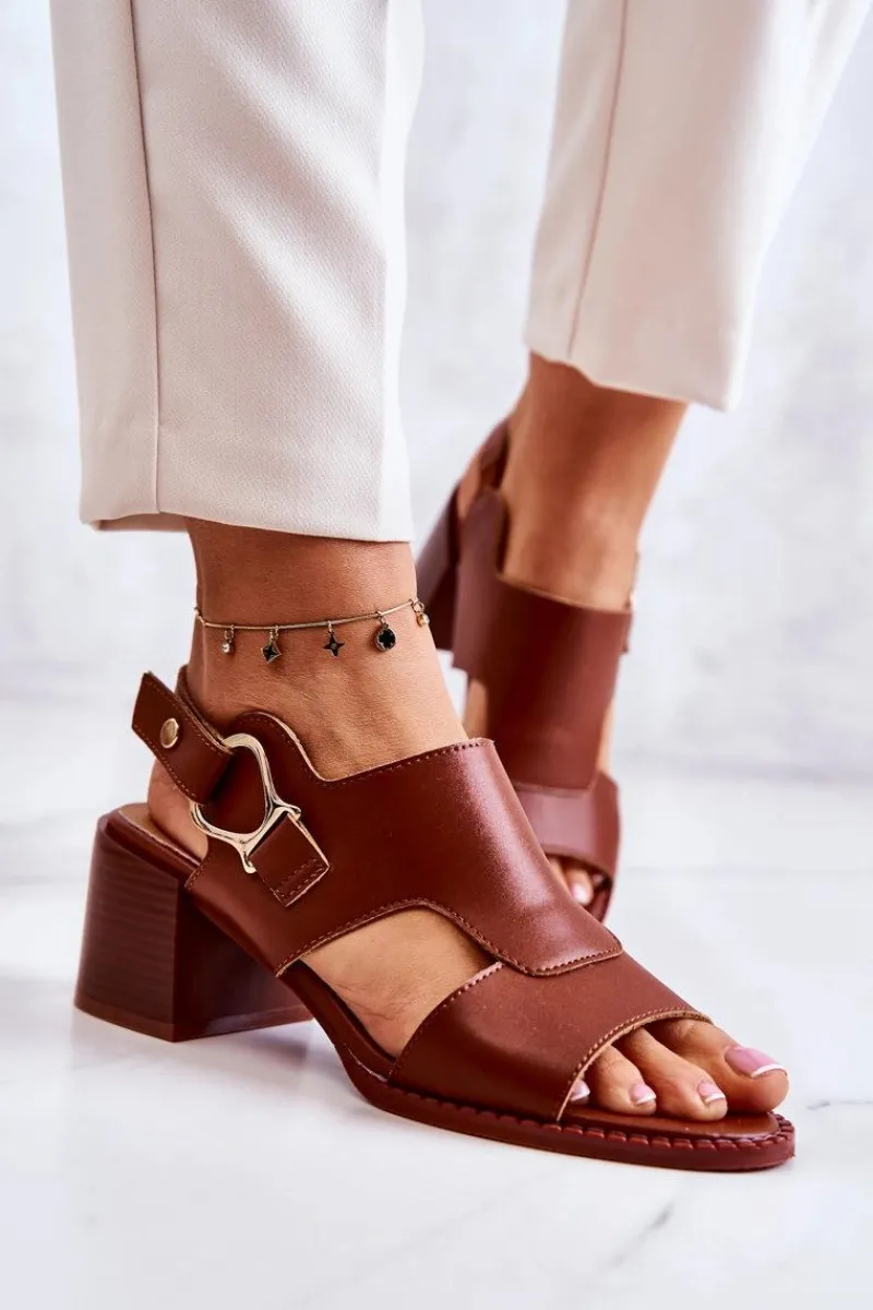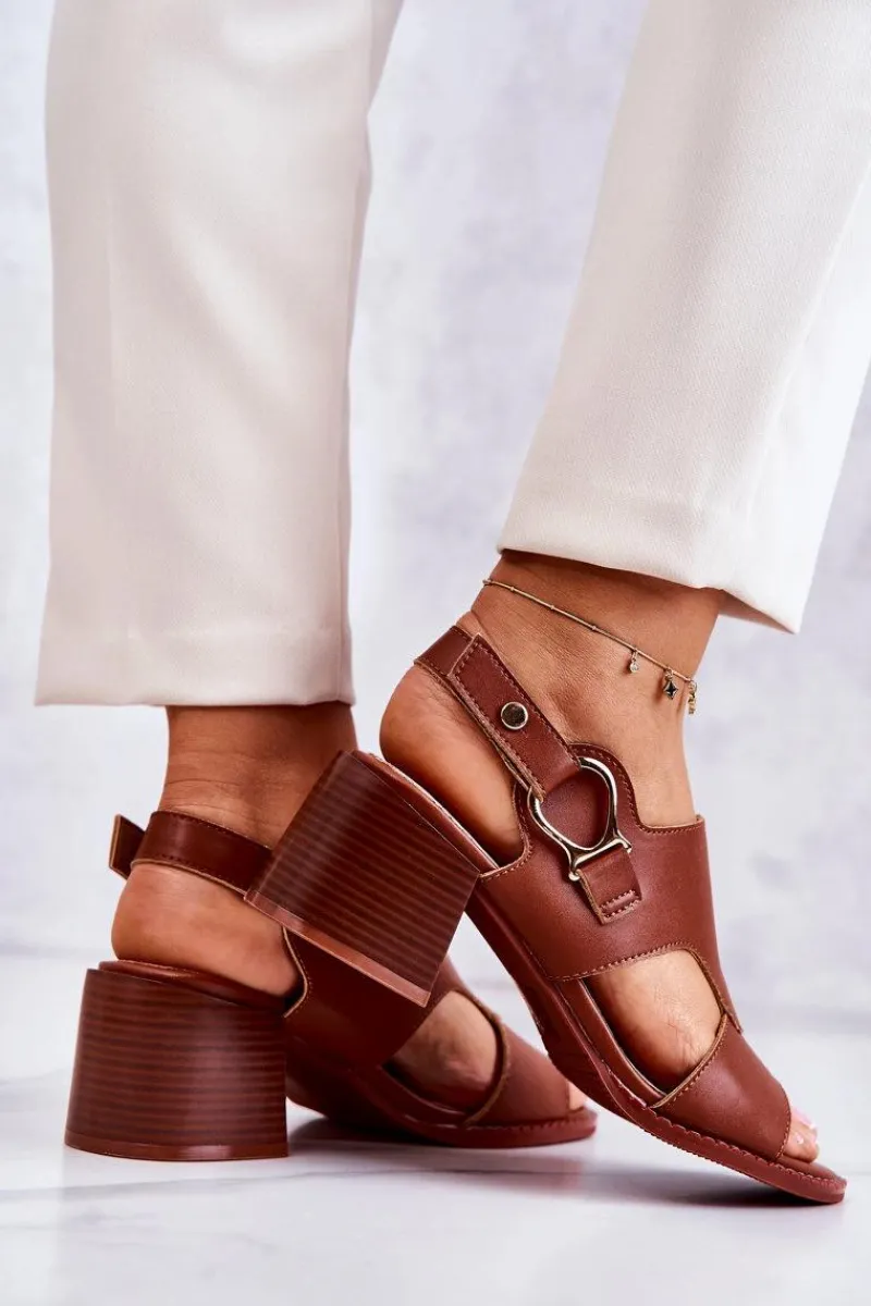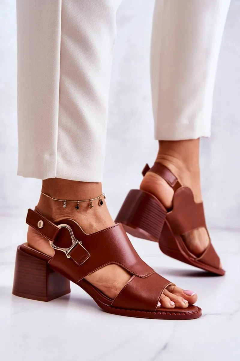 Sandały z odkrytym noskiem i piętą. Osadzone na masywnym słupku. Wykonane z wysokiej jakości eko skóry. Model wsuwany z paseczkiem na gumce, który pozwoli na odpowiednie dopasowanie obuwia. Miękka wkładka została wykonana z naturalnej skóry. Sandały są bardzo komfortowe w użytkowaniu. Styl i fason pasuje do wielu stylizacji. Podeszwa wykonana z tworzywa sztucznego. Ten model powinien znaleźć się w szafie każdej kobiety! Przy wyborze rozmiaru prosimy sugerować się tabelą rozmiarów.
