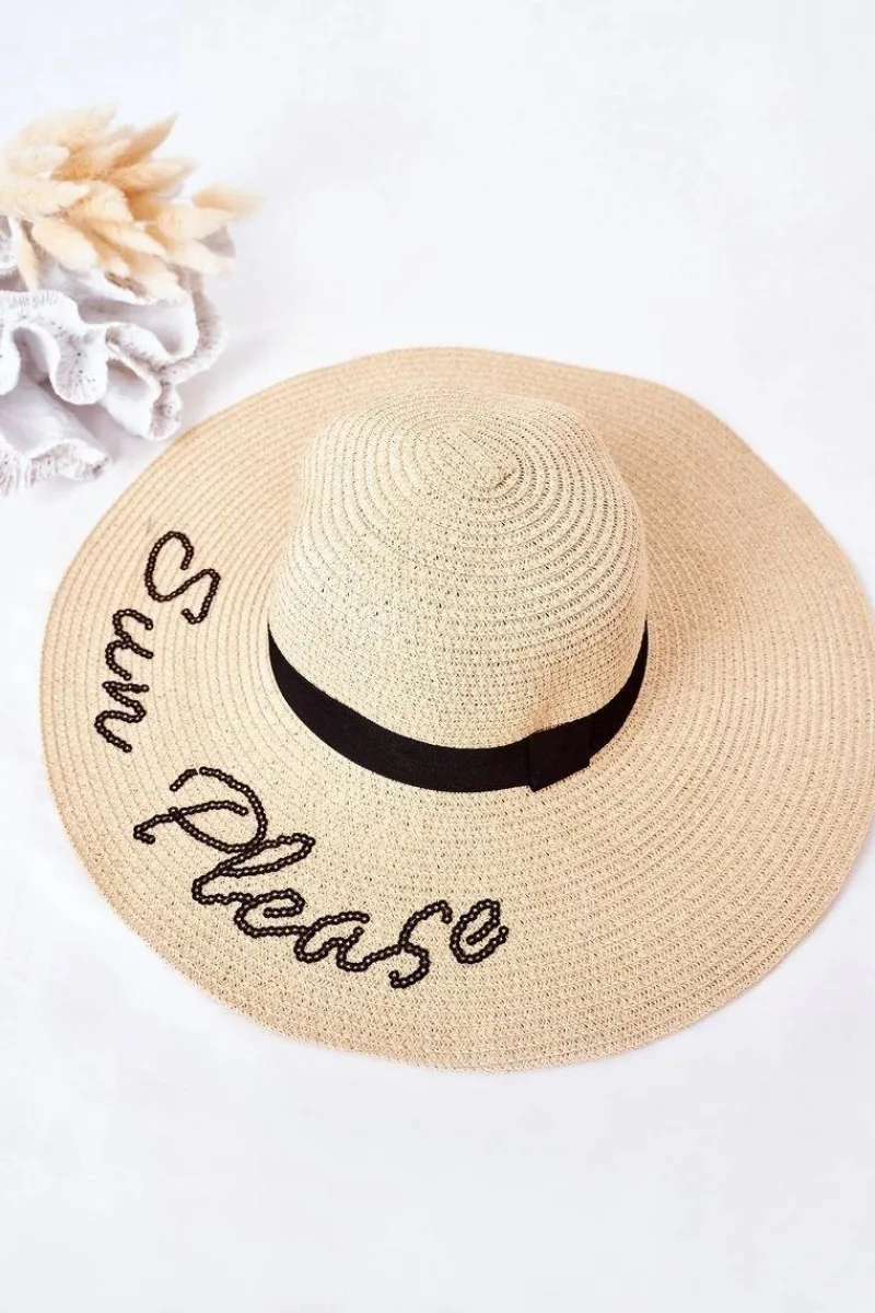 Lekki i modny kapelusz damski. Kapelusz wykonany jest w 100% z plecionego papieru. Rondo ozdobione jest cekinowym napisem oraz czarną tasiemką. Koniecznie sprawdź całą naszą kolekcję kapeluszy!