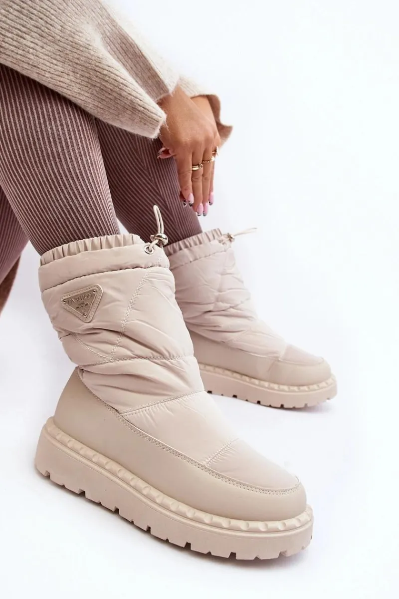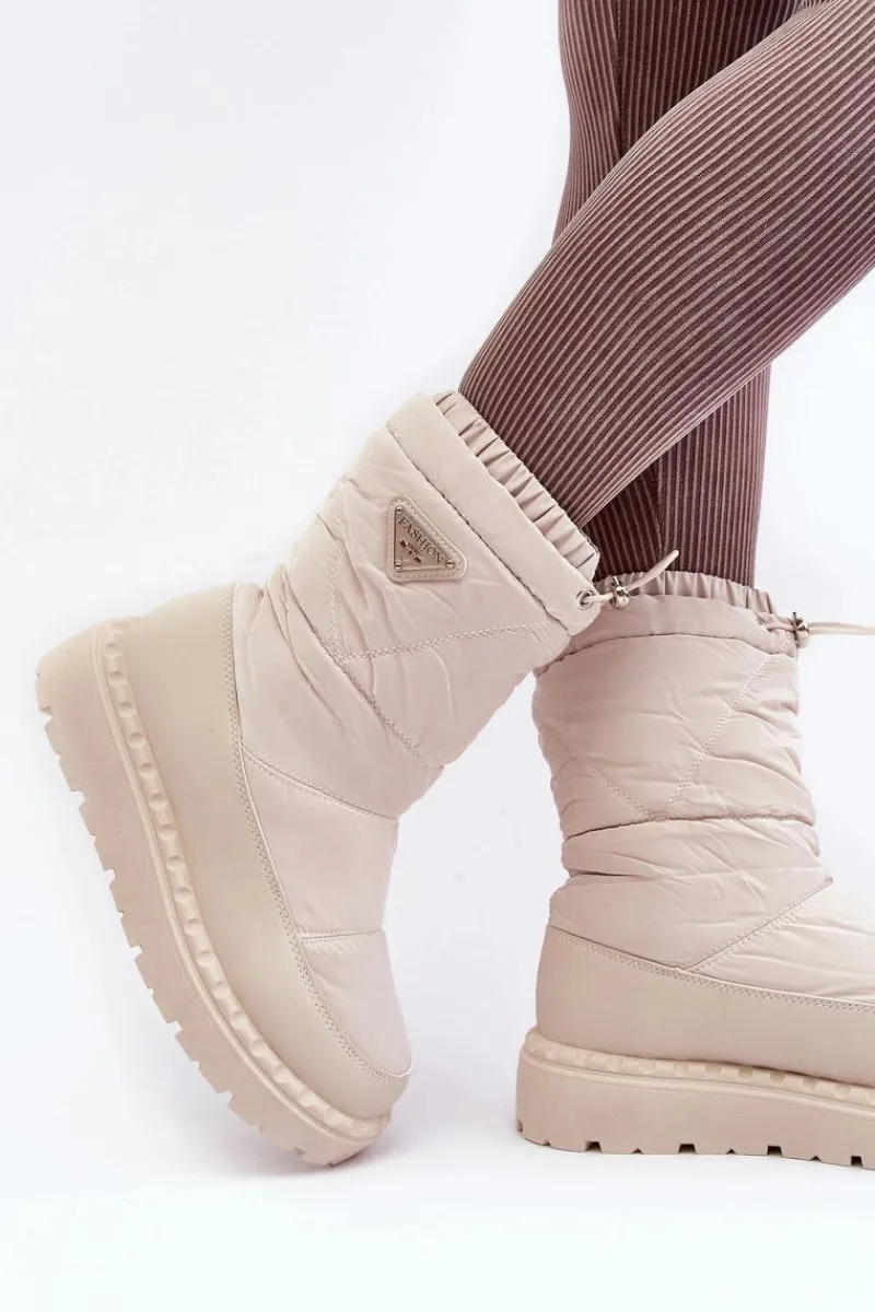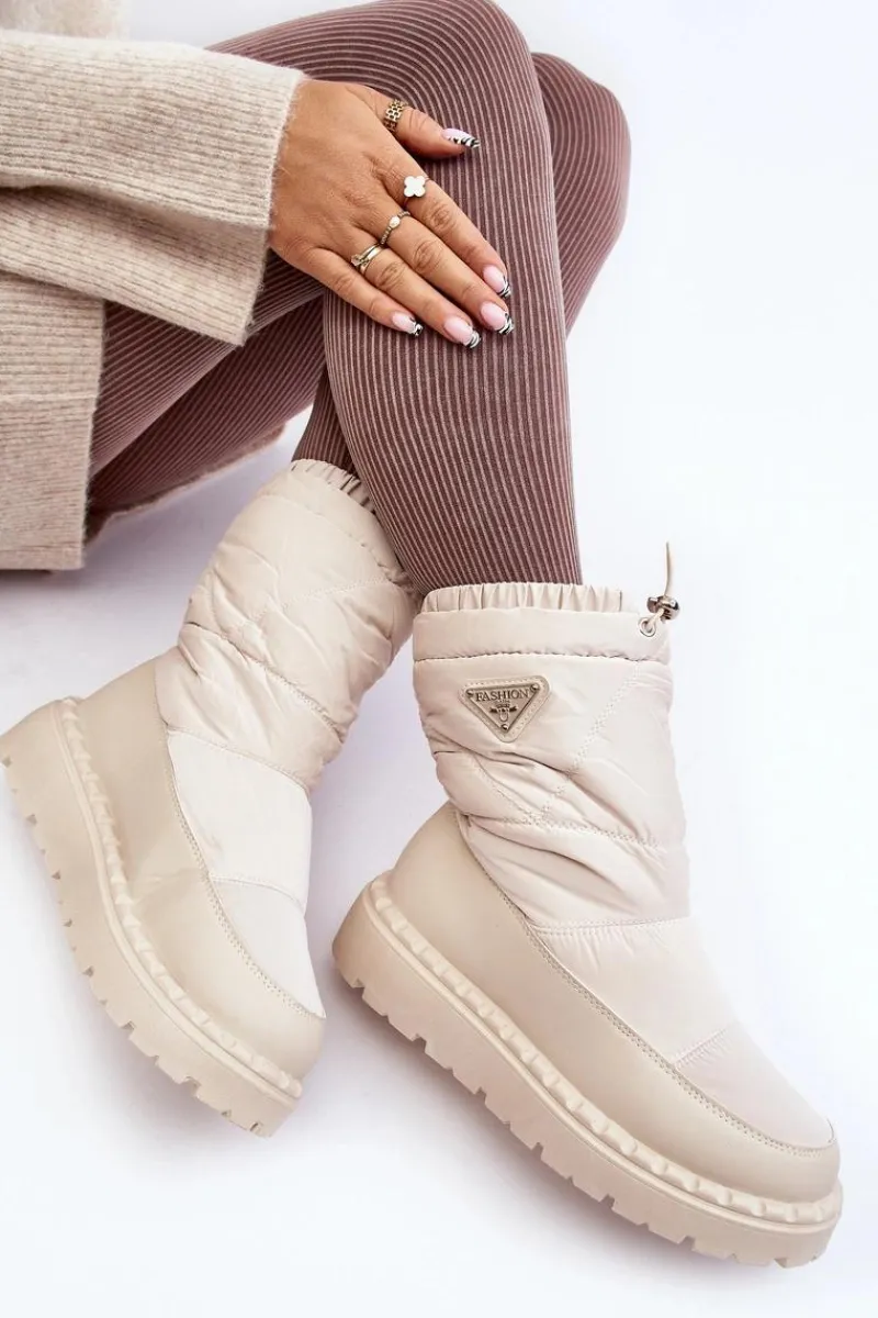 Śniegowce damskie osadzone na grubej podeszwie z gumowego tworzywa. Wykonane z połączenia eko skóry i materiału tekstylnego. Środek ocieplony grubym futerkiem. Na górze cholewki ściągacz. Idealne na mroźne dni! Koniecznie powinnaś je mieć! Przy wyborze rozmiaru prosimy sugerować się tabelą rozmiarów.