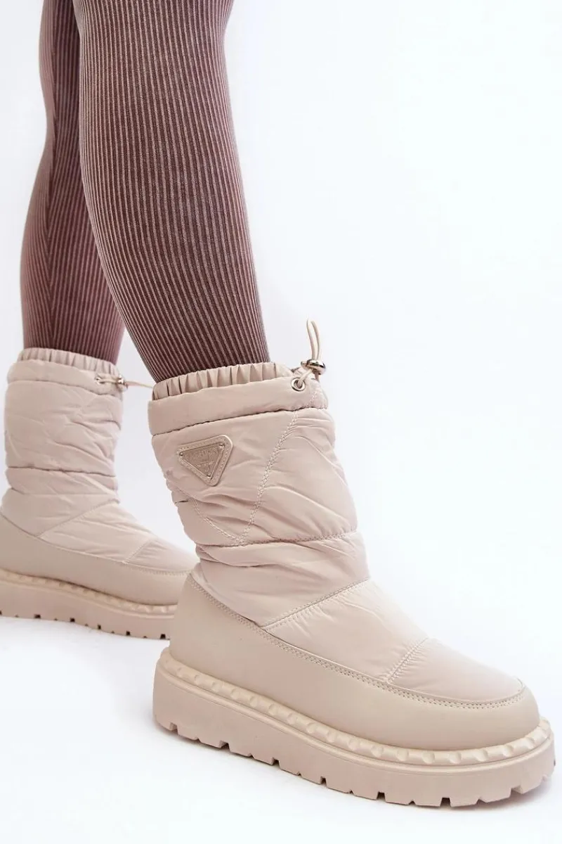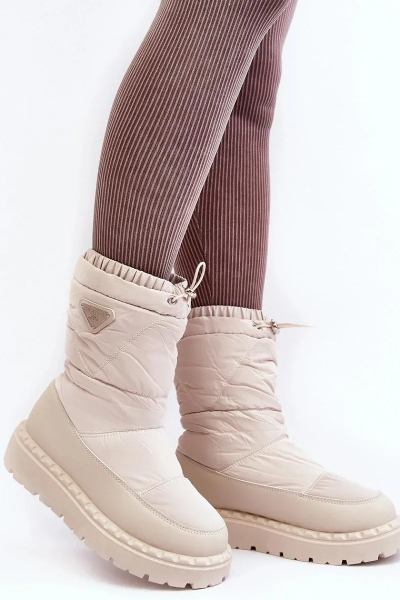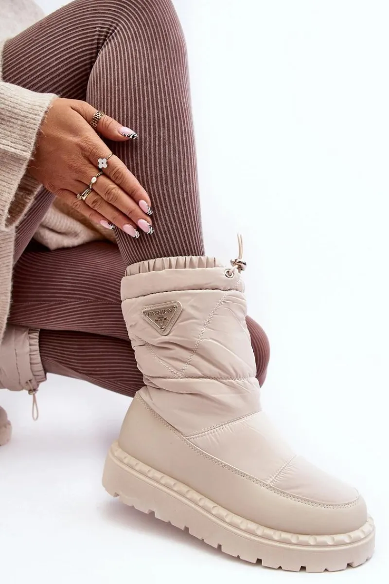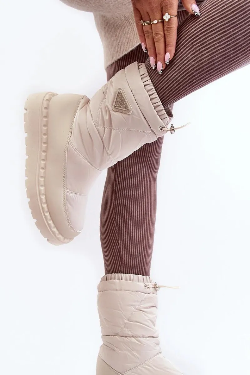 Śniegowce damskie osadzone na grubej podeszwie z gumowego tworzywa. Wykonane z połączenia eko skóry i materiału tekstylnego. Środek ocieplony grubym futerkiem. Na górze cholewki ściągacz. Idealne na mroźne dni! Koniecznie powinnaś je mieć! Przy wyborze rozmiaru prosimy sugerować się tabelą rozmiarów.
