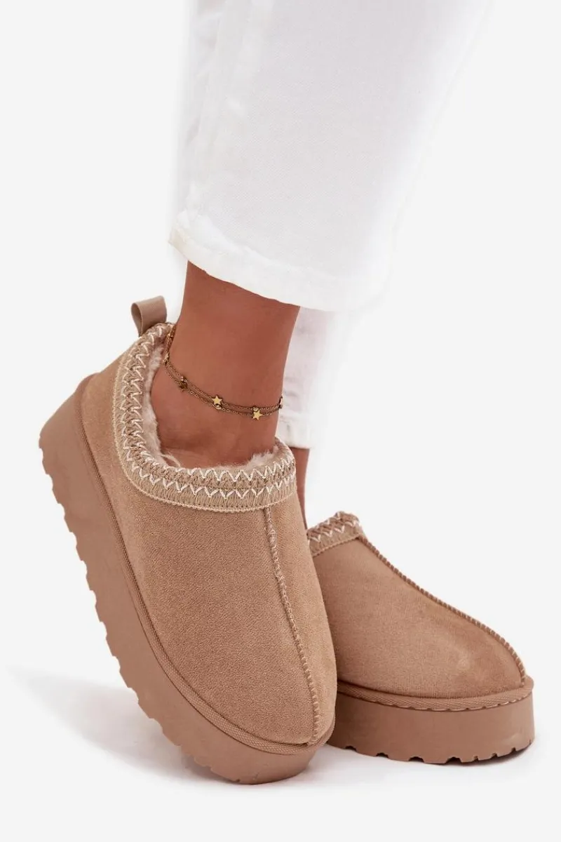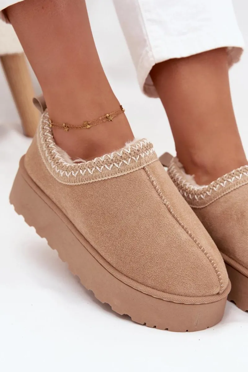 Śniegowce damskie wykonane z eko zamszu to idealna propozycja na zimę. Model zdobi lamówka w formie haftu, która nadaje całości wyjątkowego charakteru. Osadzone na platformie z gumowego tworzywa skutecznie izolują od chłodu, a miękkie futerko wewnątrz zapewnia komfort i ciepło w mroźne dni. To obuwie, które łączy funkcjonalność z modnym wyglądem – doskonałe zarówno na codzienne spacery, jak i zimowe stylizacje. Przy wyborze rozmiaru prosimy kierować tabelą rozmiarów.