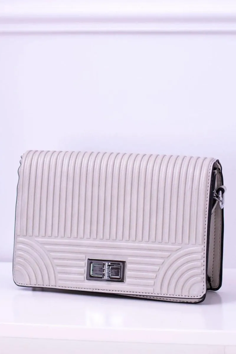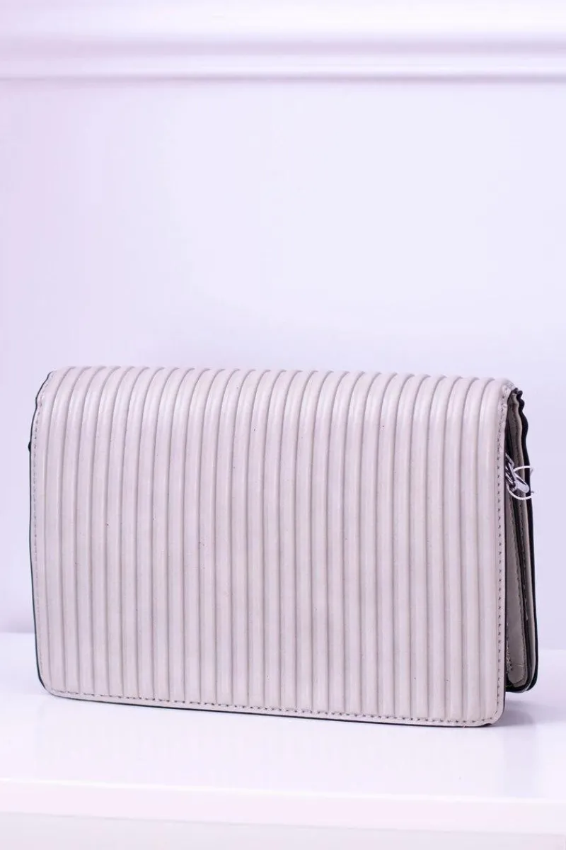 Klasyczna damska torebka w modnym prążkowanym wzorze. Noś ją z gracją do wieczorowych stylizacji. Łatwe zapinanie na zatrzask. Wnętrze pokryte ciemną podszewką. 1 duża komora z dodatkowymi kieszonkami, w tym jedna zapinana na suwak. Regulowany pasek. Dostępna w kilku kolorach.