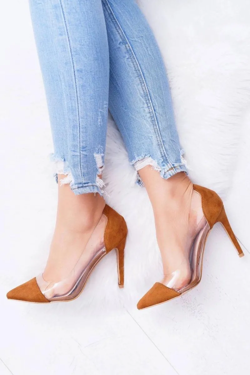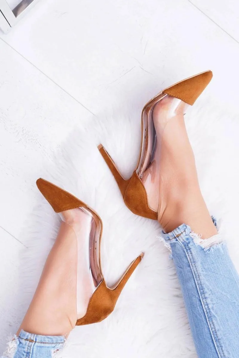 Wspaniałe szpilki z noskiem w szpic oraz transparentnymi wstawkami to hit od którego nie można oderwać oczu! Wygodę zapewnia wysoka, stabilna szpilka, która dodatkowo wysmukli i wyeksponuje Twoją sylwetkę. Przetańczysz w nich całą noc! Przy wyborze rozmiaru prosimy sugerować się tabelą rozmiarów.