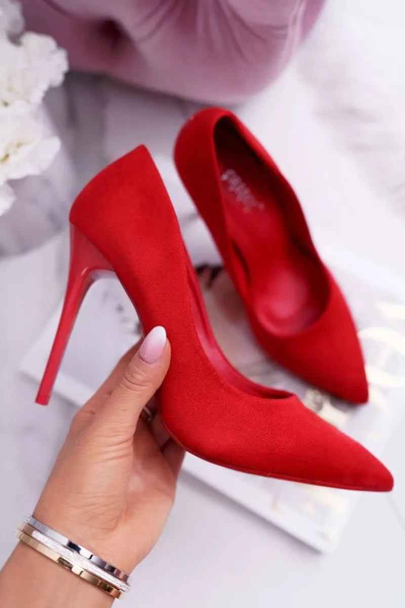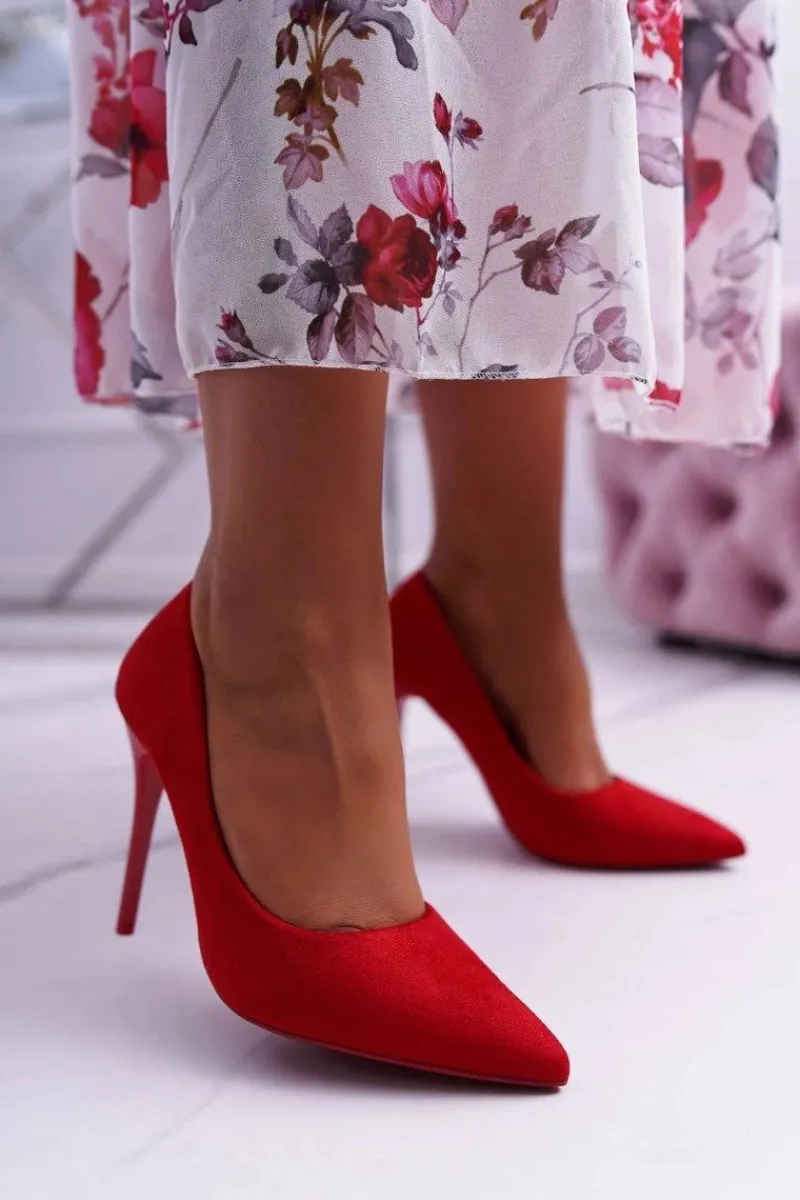 Boto Szpilki Damskie Zamszowe Czerwone Yanna