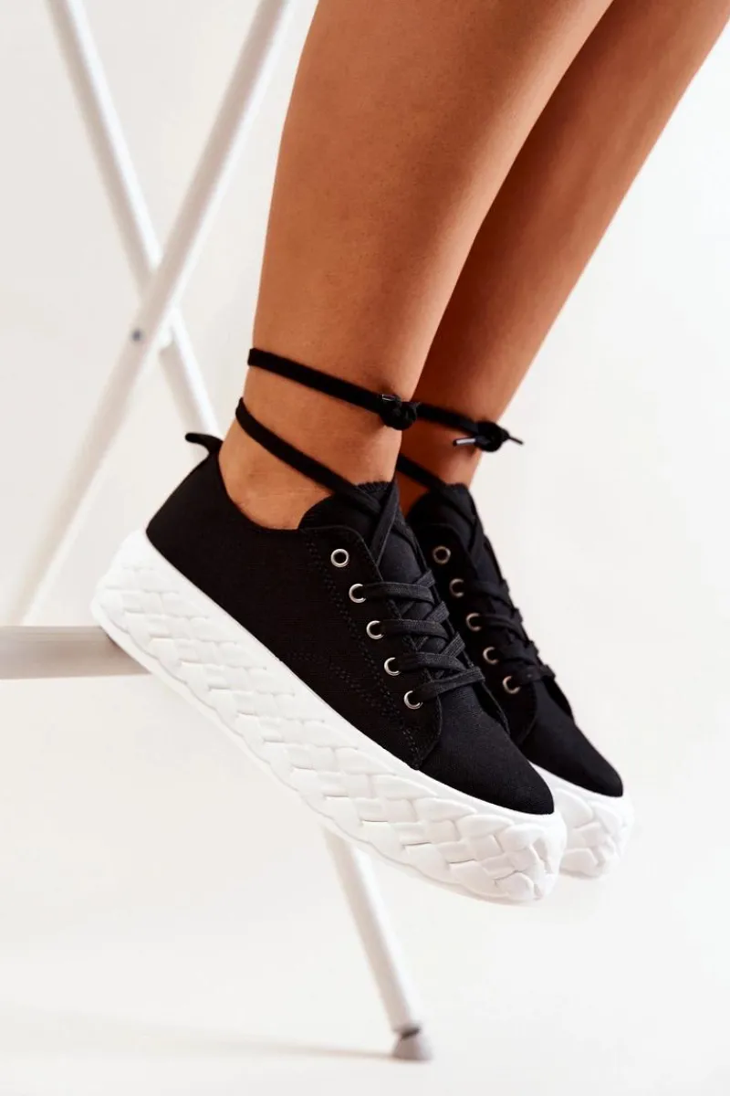 Damskie tenisówki na masywnej platformie pasują do wielu stylizacji. Wykonane z tkaniny. Posiadają materiałową wkładkę. Gumowa platforma jest przyozdobiona pięknym warkoczem. Świetnie sprawdzą się zarówno do spodni jak i spódnic. Wyraź siebie poprzez swój styl i kup te świetne tenisówki już dziś! Przy wyborze rozmiaru prosimy sugerować się tabelą rozmiarów.