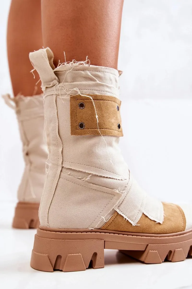 Wysokie botki – workery zostały wykonane z materiału tekstylnego. Masywna podeszwa z szerokim obcasem zapewnia stabilność na każdym kroku. Zapinane na suwak. Posiadają eko skórzaną wkładkę. Cholewka od środka jest wykonana z miękkiej tkaniny. Ciekawy wzór sprawi, że będziesz wyróżniać się spośród tłumu! Ten model to hit! Przy wyborze rozmiaru prosimy sugerować się tabelą rozmiarów.