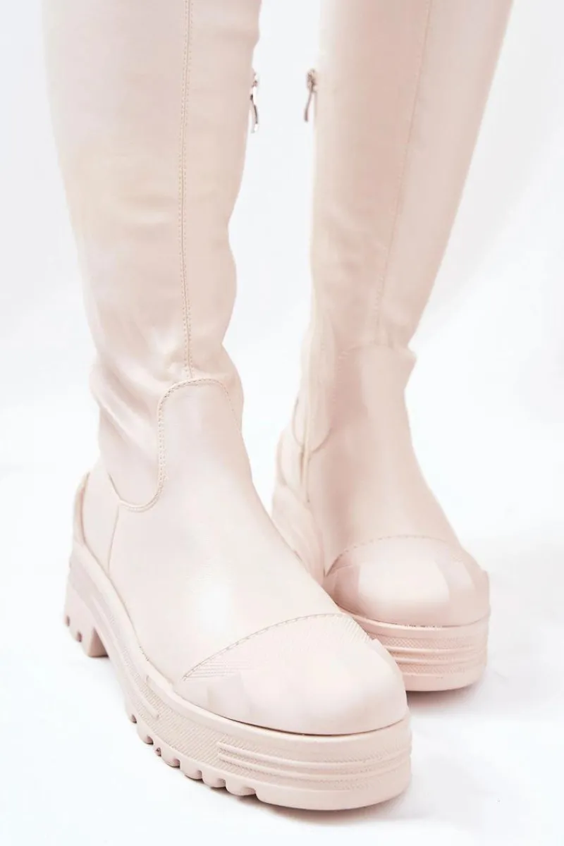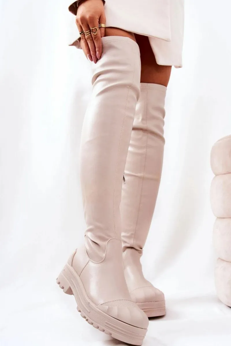 Wysokie kozaki za kolano wykonane z eko skóry. Posiadają ozdobny, gumowy nosek oraz zapiętki. Kozaki są zapinane na suwak u dołu cholewki. Masywna podeszwa zapewnia stabilność. W środku na wysokości stopy posiadają ocieplenie w postaci delikatnego koca obuwniczego. Koniecznie sprawdź także pozostałą naszą ofertę kozaków!