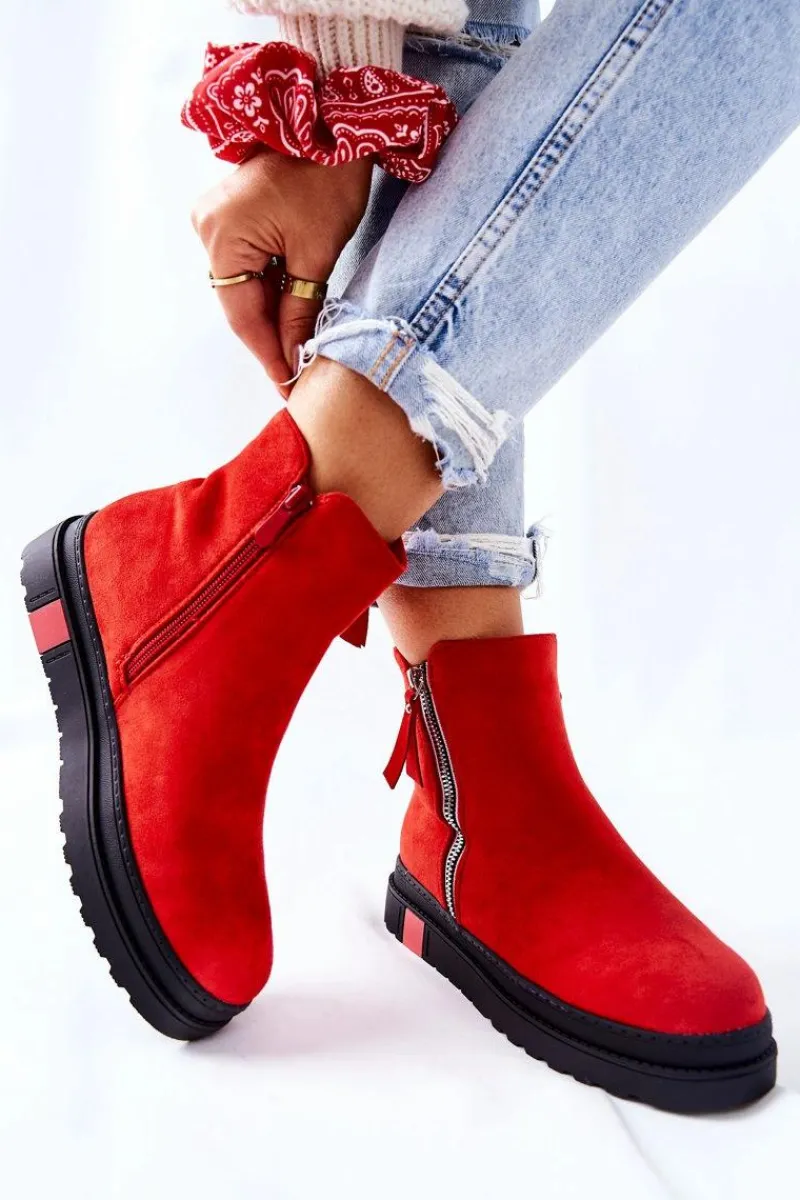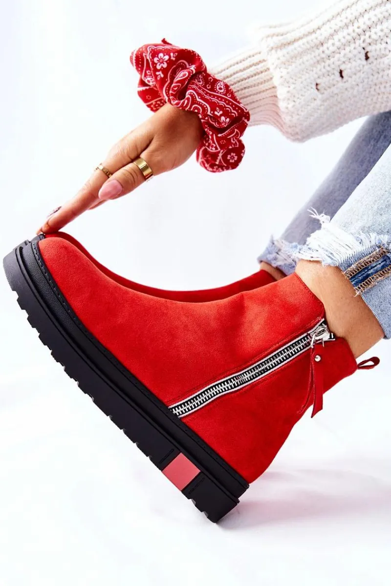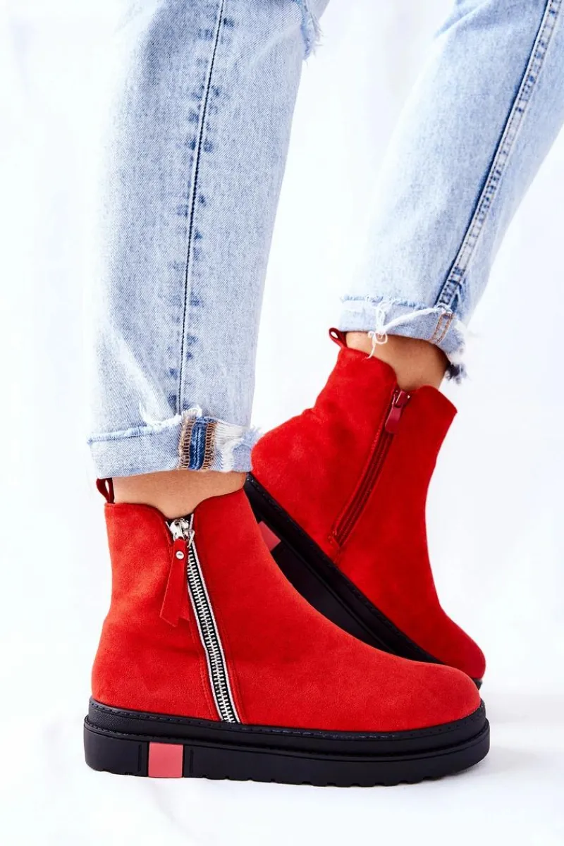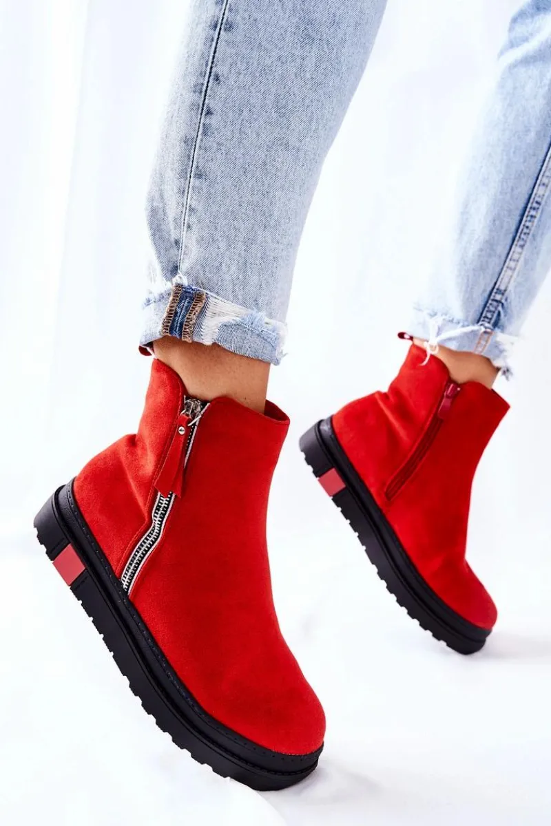 Sztyblety damskie wykonane z eko zamszu. Posiadają grubszą podeszwę, dzięki której są bardzo stabilne. Z zewnętrznej strony buta znajduje się ozdobny suwak. Natomiast z wewnętrznej suwak umożliwiający założenie obuwia. Koniecznie sprawdź pozostałe nasze modele! Przy wyborze rozmiaru prosimy sugerować się tabelą rozmiarów.