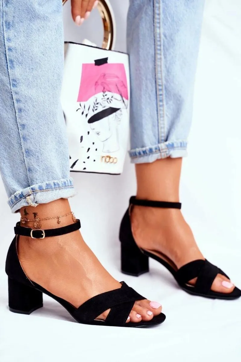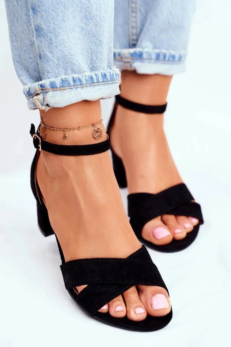 Boto Zamszowe Sandałki na Słupku Czarne Nela