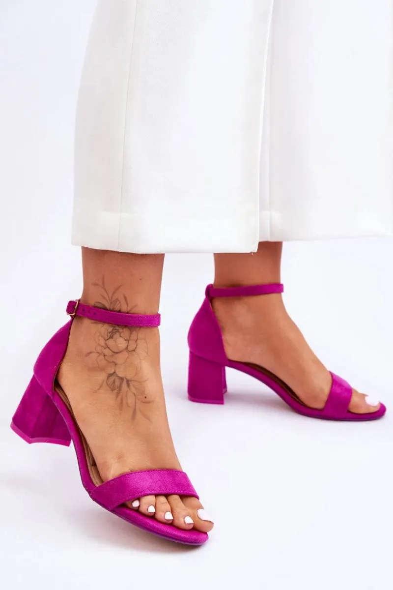 Wyjątkowe sandałki na niewysokim obcasie w postaci stabilnego słupka. Wykonane z przyjemnego w dotyku eko zamszu. Sandałki te posiadają usztywniany zapiętek. Wkładka wykonana z eko skóry zapewni komfortowe użytkowanie. Nosek odkryty, zaokrąglony. Zapinane wokół kostki na regulowany pasek ze sprzączką. Na pewno wykorzystasz je w wielu sytuacjach! Przy wyborze rozmiaru prosimy sugerować się tabelą rozmiarów.