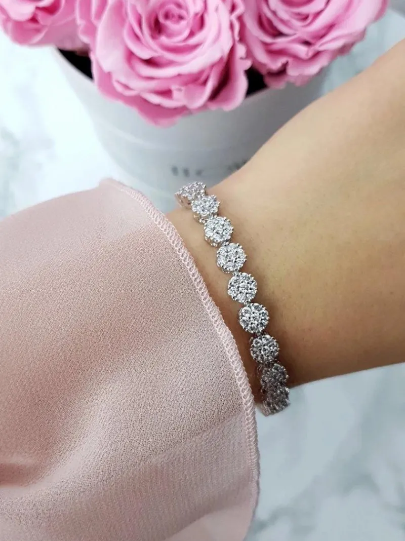 My kobiety kochamy błyskotki. Każda stylizacja potrzebuje dodatków, a nawet te najmniejsze są bardzo ważne. Mowa tu o pięknej biżuterii, która podkreśli to co najlepsze. Wspaniała bransoletka na łańcuszku z eleganckimi kryształami. Modny wzór na który każda z nas zwróci uwagę. Możliwość regulacji długości bransoletki. Sprawdź całą naszą kolekcję biżuterii i wybierz swój ulubiony dodatek.