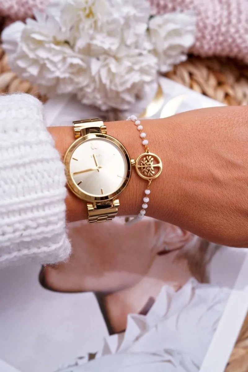 Bransoletki>Boto Damska Bransoleta Na Łańcuszku Złota Białe Koraliki Drzewo Życia Spiritual
