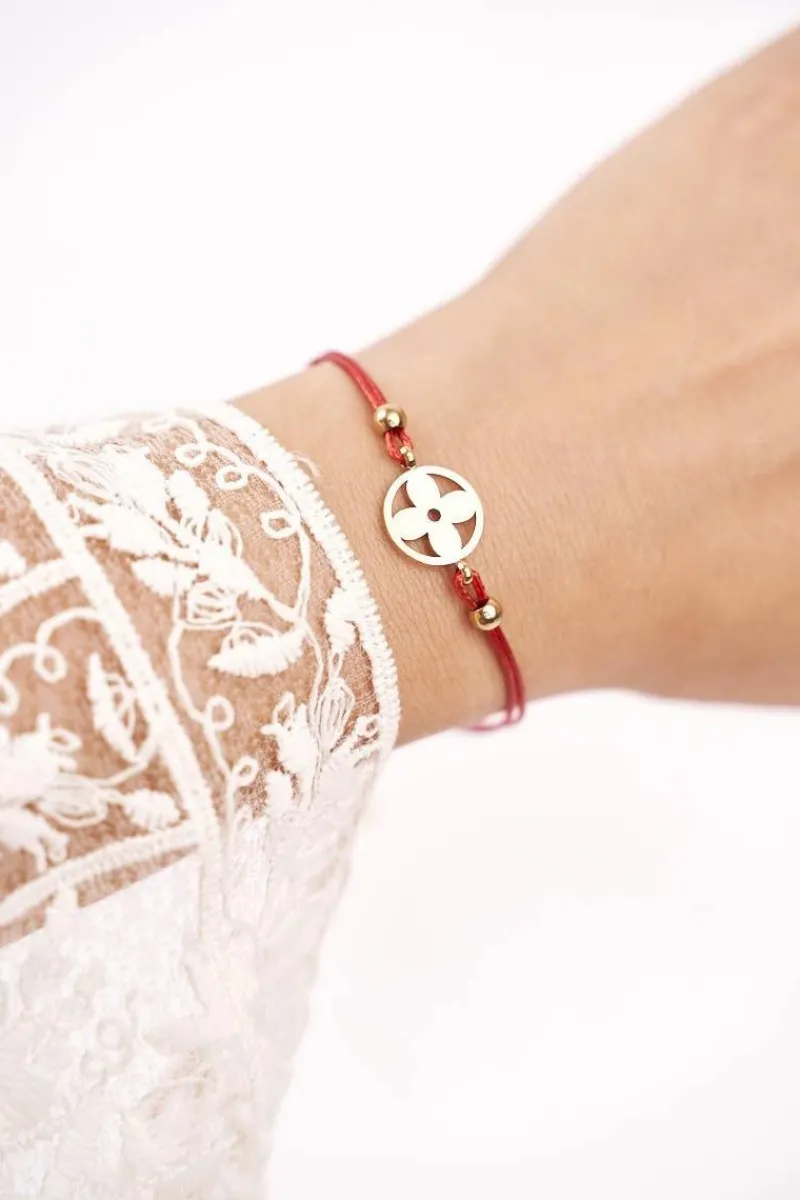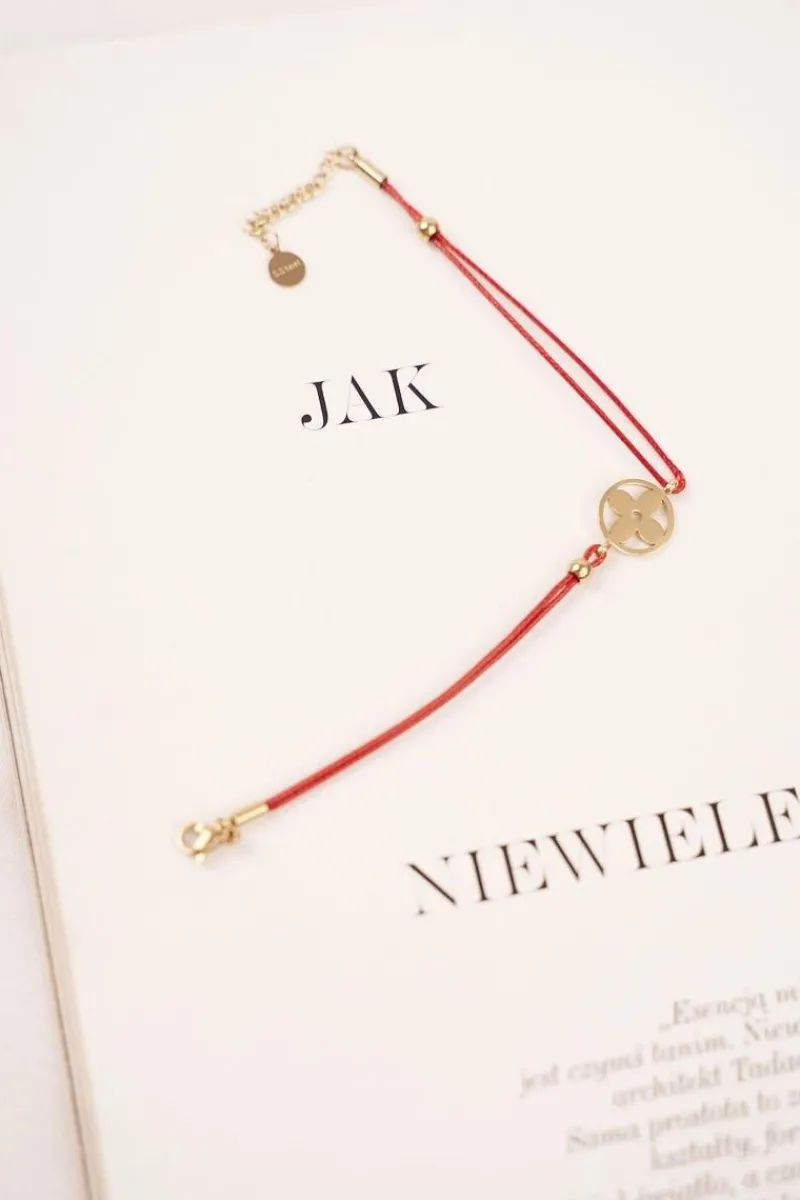 Bransoletki>Boto Damska Bransoletka Czerwony Sznurek Celebrytka Złota Koniczynka Clara