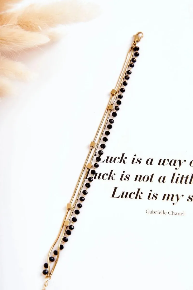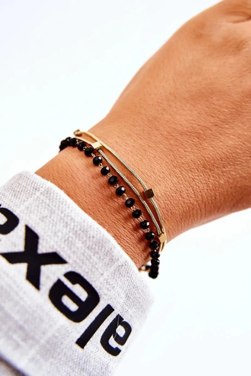Bransoletki>Boto Damska Podwójna Bransoletka Mini Kwadraty Złoto-Czarna