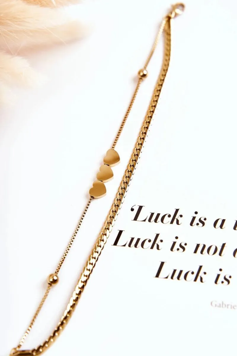 Bransoletki>Boto Damska Podwójna Bransoletka Trzy Serca Złota