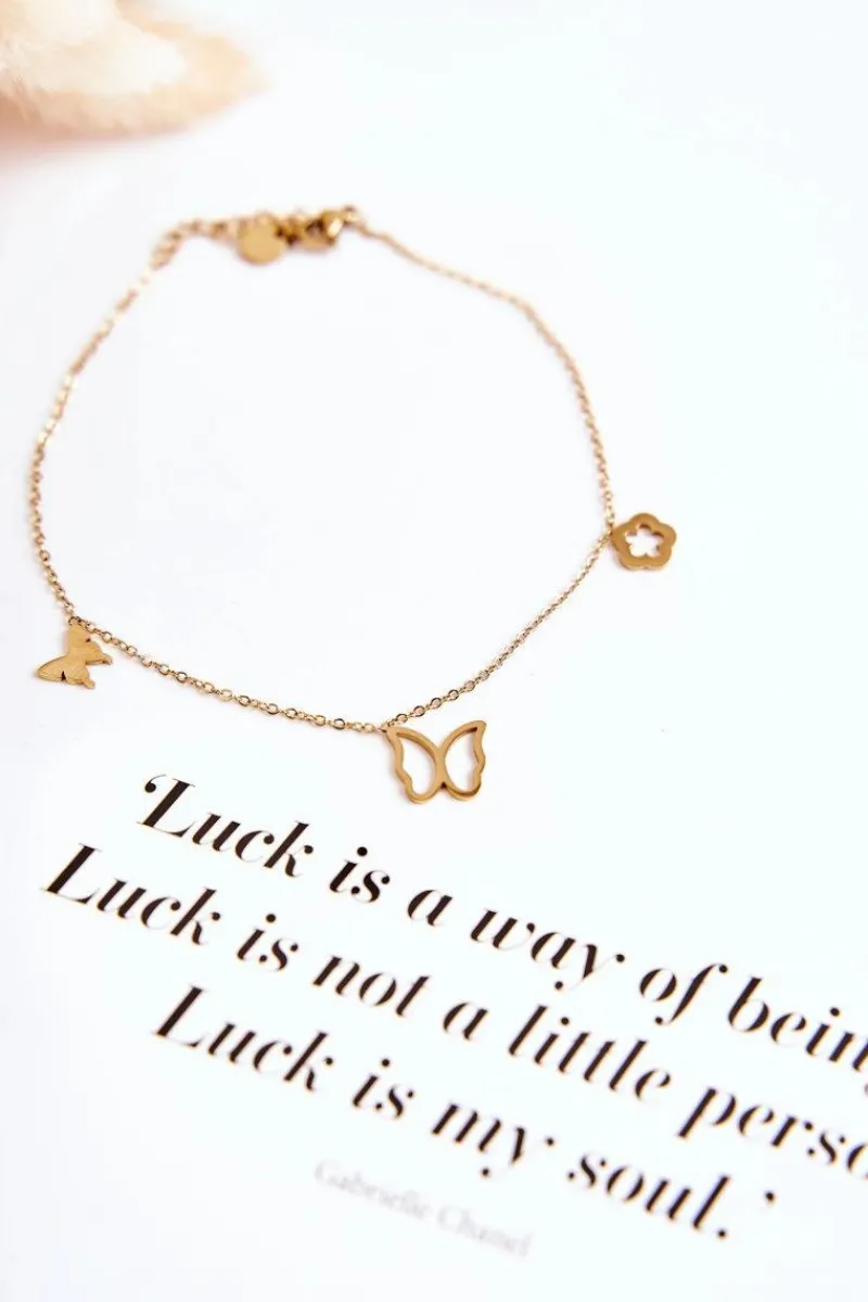 Bransoletki>Glam Chic Bransoletka Na Nogę Motyle I Kwiat Złota