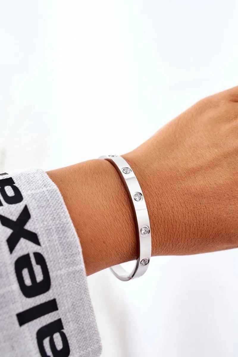 Bransoletki>Glam Chic Bransoletka Stalowa Z Dużymi Cyrkoniami Srebrna