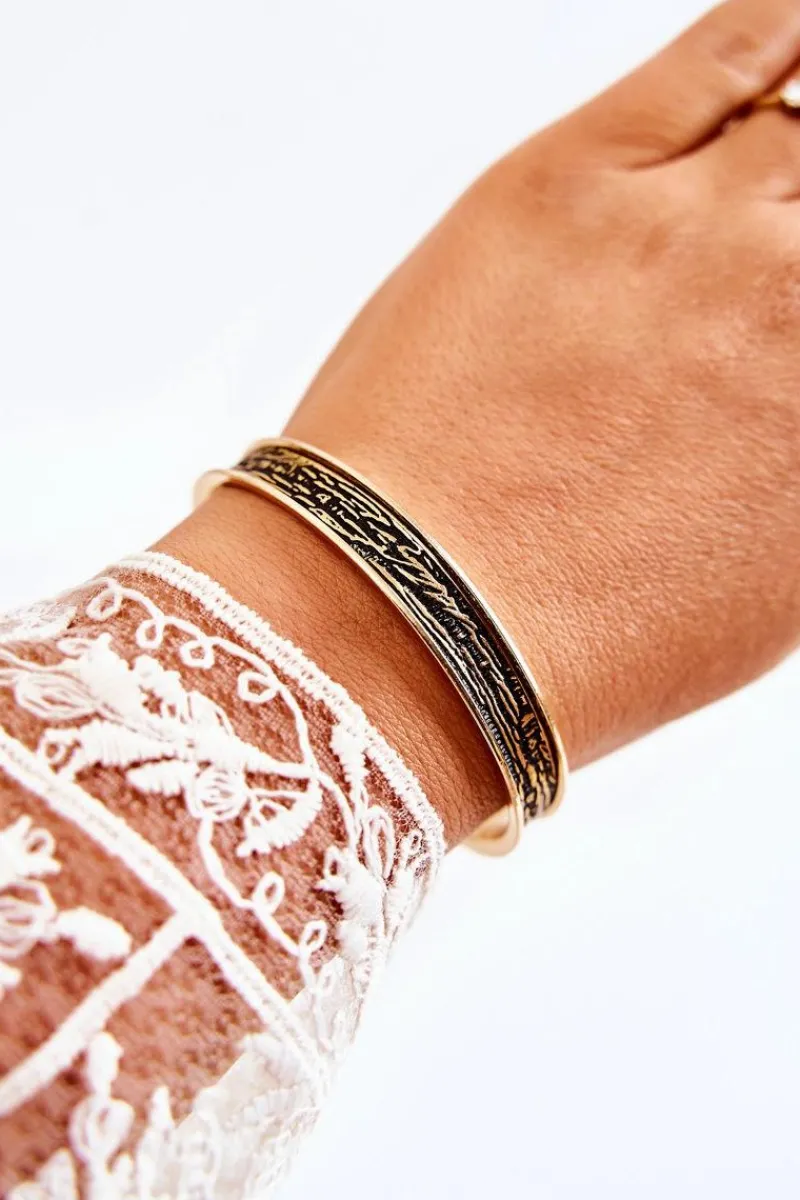 Bransoletki>Glam Chic Damska Wsuwana Bransoletka Z Tłoczeniem Czarno-Złota