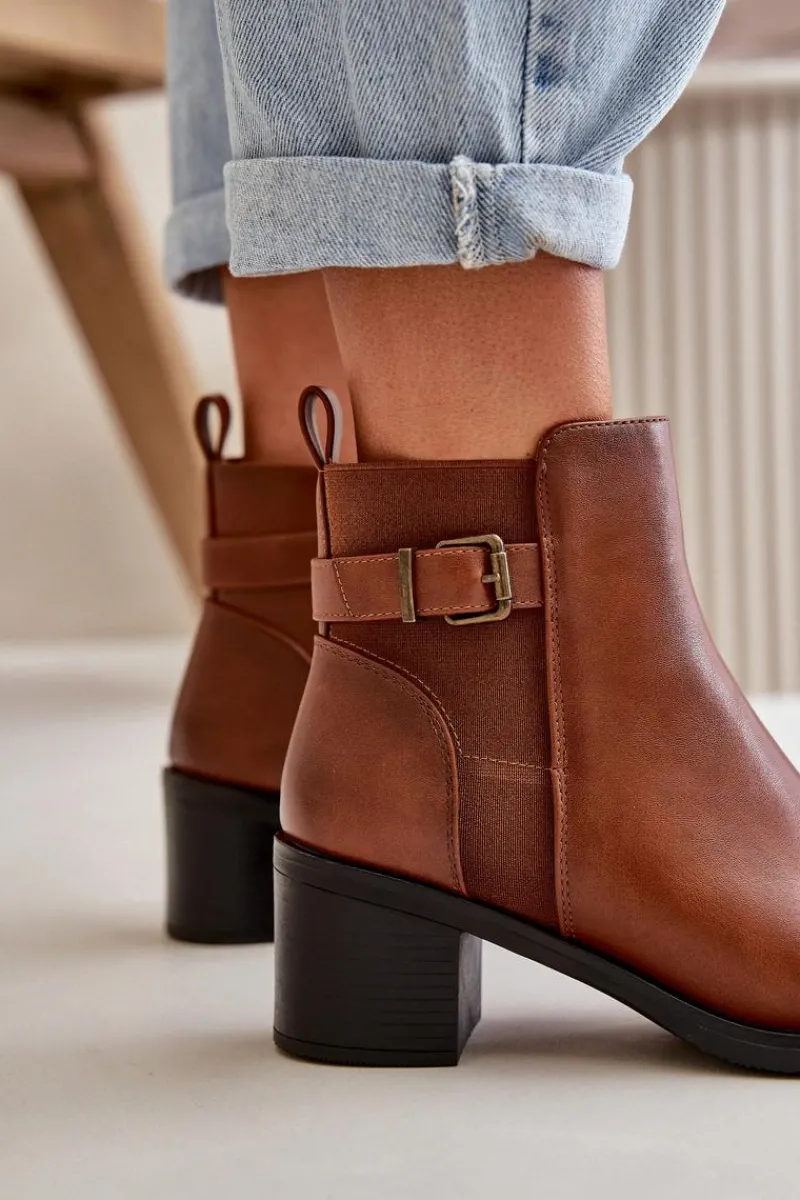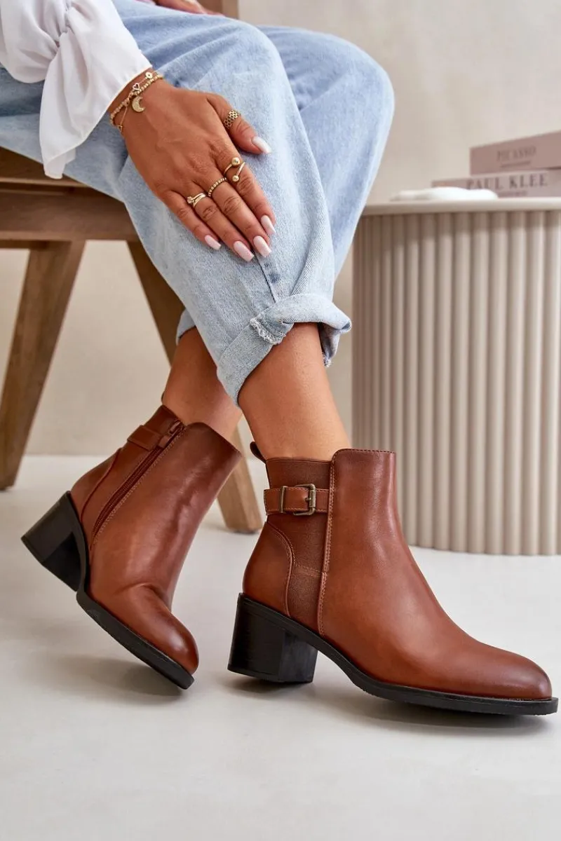 Botki damskie wykonane z eko skóry. Wnętrze ocieplone jest kocem obuwniczym, co zapewnia dodatkowe ciepło i komfort podczas chłodniejszych dni. Model zapinany na zamek, co ułatwia zakładanie i zdejmowanie, a także zapewnia doskonałe dopasowanie do stopy. Ozdobione detalem w postaci paseczka z klamrą. Idealne na jesienne i zimowe dni! Przy wyborze rozmiaru prosimy sugerować się tabelą rozmiarów.